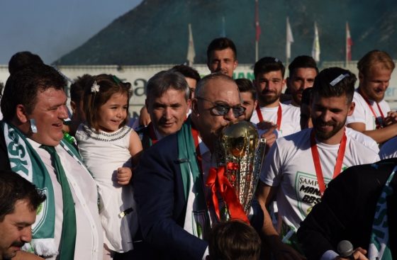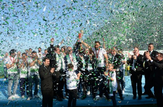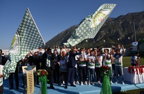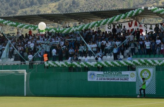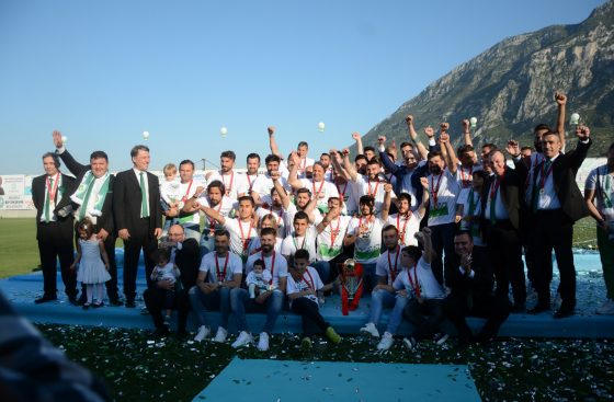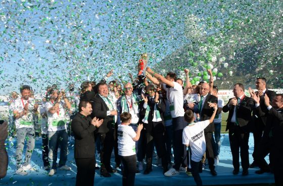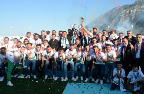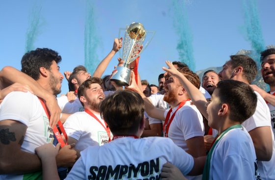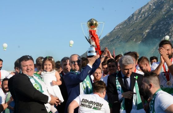 Sezonun bitimine beş hafta kala şampiyonluğunu ilan eden Manisa Büyükşehir Belediyespor kupasına bugün kavuştu. Lig’in 29.haftasında Bergama maçı ardından Türkiye liglerinde şampiyonluğunu ilan eden ilk takım olan yeşil beyazlı ekip üç hafta boyunca Türkiye Futbol Federasyonu’nun kupa ve madalyaları hazırlamasını bekledi. Bugün konuk ettiği ve 2-1 yendiği Batman maçının ardından şampiyonluk kupasını kaldıran Manisa Büyükşehir Belediyesi oyuncuları ,teknik kadrosu, yönetimi ve taraftarlarının coşkusu görülmeye değerdi.