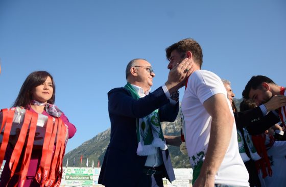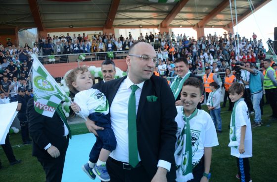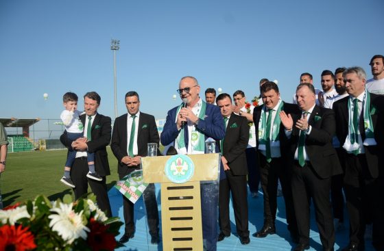 Şampiyonluk kutlamalarında ilk olarak Manisa Büyükşehir Belediyespor Başkanı Mevlüt Aktan konuştu. Manisa’ya yeni bir heyecan kazandırdık diyerek sözlerine başlayan Başkan Aktan; “Değerli Manisalı sporseverler, bizleri sahalarda yalnız bırakmayan taraftarlarımız, bize bu mutluluğu yaşatan futbolcu kardeşlerim, kıymetli hocamız ve teknik heyetimiz. Ve bize sağladığı her türlü imkânla bu başarının en önemli mimarı ve destekçisi, yol göstericimiz Büyükşehir Belediye Başkanımız Sayın Cengiz Ergün, bayram günümüze hoş geldiniz. Değerli misafirlerimiz; yönetim kurulu üyesi arkadaşlarım ve bir yıl önce kongremizde görev aldıktan sonra bu kentin emanetini daha iyi yerlere taşımak için harekete geçtik. Bizden önce yapılanların üzerine ne ekleyebiliriz diye düşündük, planladık, kendimize bir hedef koyduk, inandık ve uygulamaya geçtik. O gün kendimize belirlediğimiz hedef şampiyonluk ve kalıcı başarıydı. Bugün Allah’a şükürler olsun ki önce Allah’ın yardımı sonra kurumsal başarı ve inançla şampiyonluğa ulaştık. Bugün geldiğimiz noktada Manisa Büyükşehir Belediyesporumuz, Manisa’ya yeni bir heyecan kazandırdı. Yıllardır sportif başarıya hasret kentimiz, Manisa için yeni bir solukta bir araya geldi. Manisa Belediyespor, uzun zamandır futbol başarısı tadamayan Manisa için yeni bir heyecan oldu. Bünyemizde bulunan 13 spor branşı ve yaklaşık 4500 sporcu ordusu ile bu kentin önemli bir açığını kapattık. Ve daha ilk sene de, Türkiye Profesyonel Futbol Ligleri’nin ilk şampiyonu olarak büyük bir takdiri hak ettik. Bizler Manisa için buradayız, futbolcularım, yöneticilerim, taraftarlarım Manisa diye bağırıyor ve Manisa’nın yeni takımına şampiyonluk gururuyla kucak açıyor. Bize inanan ve hiçbir zaman yalnız bırakmayan bu kentin insanlarına, şampiyonluğu yaşattığımız için mutluyuz ve bundan sonra yenilenecek yüzümüzle daha büyük başarılara imza atacağız. Şimdi bizlerin tek beklentisi bu kentin sportif heyecanını diri tutmak ve emanet edilen bu görevleri her konuda hesap verebilir bir şekilde sürdürmeye devam etmek. Bundan sonra hedefimiz bayrağı daha ilerilere taşımak olacak. Alt yapısıyla, tesisiyle, futbolcu okuluyla örnek bir kulüp olmak için planlarımızı yaptık ve uygulamaya geçtik. Bunun da müjdesini vermek istiyorum. Mutluluğumuzu paylaşmak için aramızda bulanan değerli Belediye Başkanımıza sözü bırakmak istiyorum ve bir kez daha sportif öngörüsü ile bizlere her türlü desteği veren başta Büyükşehir Belediye Başkanımız Sayın Cengiz Ergün olmak üzere, aramızda olan herkese teşekkür ediyorum. Son olarak şunu söylemek istiyorum, Manisa Büyükşehir Belediyespor dün de Manisa’nın spor kulübüydü bugün de. Yarın da Manisa’nın spor kulübü olarak sportif başarısıyla var olmaya devam edecek. Bu başarıyı daha ileriye taşımak için elimizden geleni yapacağız. Gayret bizden, Takdir Allah’tan. Bizi izlemeye devam edin” dedi.