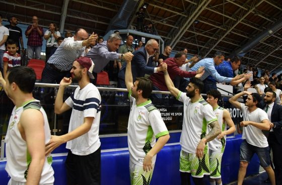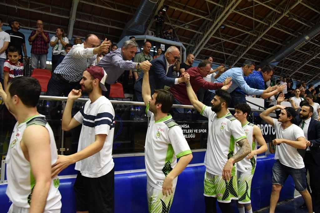 Maçın sona ermesinin ardından Manisa Büyükşehir Belediye Spor Erkek Basketbol Takımı oyuncuları sevinçlerini maçı büyük bir heyecanla takip eden Büyükşehir Belediye Başkanı Cengiz Ergün, yönetim kurulu üyeleri ve taraftarlarla birlikte paylaştılar.