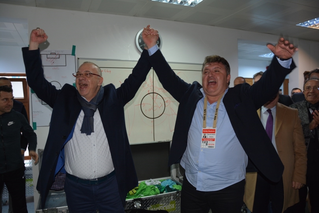 Maçın sona ermesinin ardından Mümin Özkasap Spor Tesisleri adeta bayram yerine dönerken, büyükşehir belediye başkanı Cengiz Ergün’de büyük bir sevinçle soluğu kulüp başkanı Mevlüt Aktan ile birlikte soyunma odasında alıyordu. Yeşil beyazlı futbolcular başkan Ergün’ü soyunma odasında, ‘ Büyük Başkan’ tezahüratlarıyla karşılamışlardı. Ligin bitimine daha 12 hafta vardı. İnanmışlar ordusuna sonuna kadar güvenen başkan Cengiz Ergün, ligin bitimine 12 hafta kala şampiyonluğu ilan etmiş ve soyunma odasında şu sözlerle takıma olan güvenini dile getirmişti, “ Öncelikle bugün kadar bizleri en iyi şekilde temsil ettiğiniz için, yüreğinizle mücadele ettiğiniz için, birbirinize kuvvet ve güç verdiğiniz için, Manisa Büyükşehir Belediyesini en iyi şekilde temsil ettiğiniz için ve zirveye taşıdığınız için Allah hepinizden razı olsun. ŞAMPİYONLUĞUNUZ HAYIRLI OLSUN”