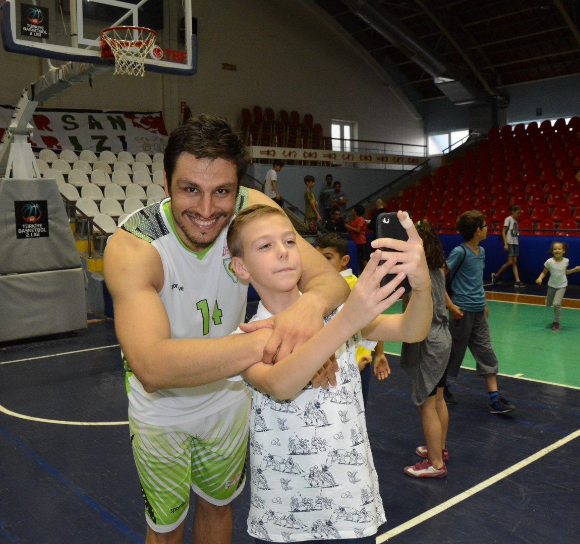 Türk sporunun parlayan yıldızı Manisa Büyükşehir Belediyespor’un futboldan sonra basketbolda da şampiyonluğa koşması sporseverlerin büyük takdirini topladı. Atatürk Spor Salonu’nda oynanan ve farklı kazanılan Boluspor maçının ardından öğrenciler dev adamlardan imza alabilmek için sıraya girdiler ve cep telefonlarıyla bol bol selfie yaptılar.