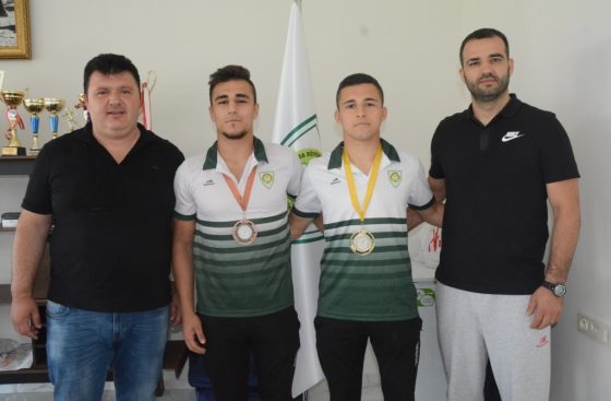 Bosna Hersek’in Bihaç şehrinde düzenlenen Ümitler Judo Balkan Şampiyonasında altın madalya kazanan Niyazi Gökçen ve bronz madalya kazanan Abidin Karubulut kulüp başkanı Mevlüt Aktan’a gerçekleştirdikleri ziyarette, “ Bosna Hersek’ten yapılan Ümitler Judo Balkan Şampiyonasında ülkemizin, Manisa’mızın ve kulübümüz Manisa Büyükşehir Belediyespor’un adını başarıyla duyurduğumuz ve İstiklal marşımızı okuttuğumuz için çok mutluyuz. Büyükşehir Belediye Başkanımız Cengiz Ergün, kulüp başkanımız Mevlüt Aktan ve yönetim kurulumuzun bizlere inanılmaz desteği var. En iyi şartlarda müsabakalara hazırlanıyoruz. İnşallah bundan sonra çok daha güzel başarılar yaşayacağız. Bizlere büyük destek veren Manisa Büyükşehir Belediye Başkanımız Cengiz Ergün, kulüp başkanımız Mevlüt Aktan ve yönetim kurulumuza bizlere verdikleri destek nedeniyle bir kez daha teşekkür ediyoruz” ifadelerini kullandılar.