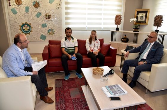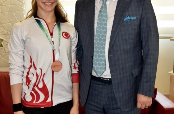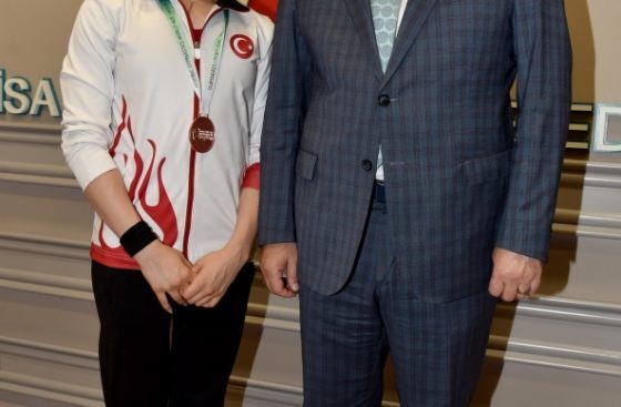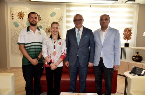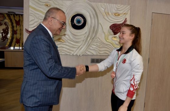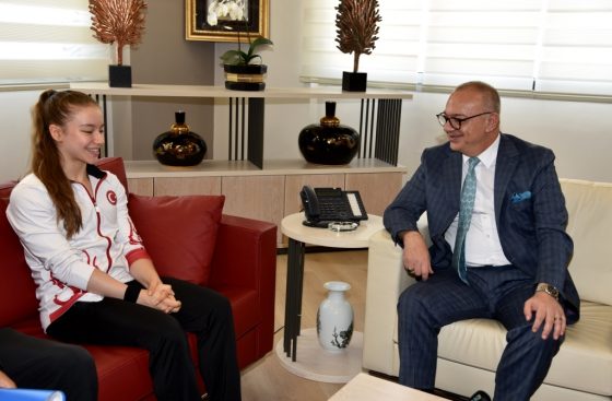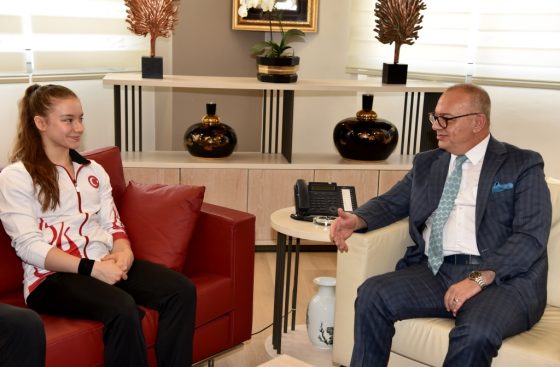 Mayıs ayı içerisinde katıldığı iki uluslararası turnuvada milli takım formasıyla önemli başarılara imza atan Manisa Büyükşehir Belediyespor cimnastik takımı sporcusu Ayşe Begüm Onbaşı, Manisa Büyükşehir Belediye Başkanı Cengiz Ergün’ün konuğu oldu. Başkan Ergün, yeşil-beyazlı sporcunun milli takım formasıyla elde ettiği derecelerden dolayı gurur duyduğunu belirterek, başarılarının devamını diledi.