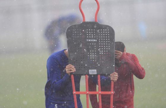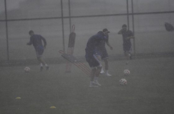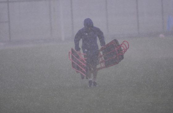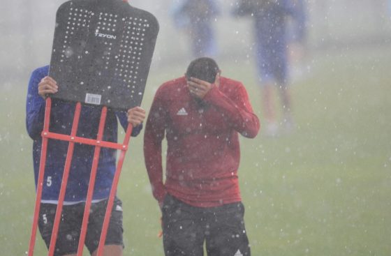 Afyon’da bugün aniden bastıran yağmur, daha sonra yerini doluya bırakınca Manisa Büyükşehir Belediyespor’un akşam antrenmanı yarıda kaldı. Teknik heyet ve futbolcular kendilerini güçlükle takım otobüsüne attılar. Teknik Direktör Levent Devrim ve futbolcular bir süre takım otobüsünde yağmur ve dolunun dinmesini beklediler ancak fırtınalı yağış ve dolu yağmaya devam edince, teknik direktör Levent Devrim akşam antrenmanını iptal etti.