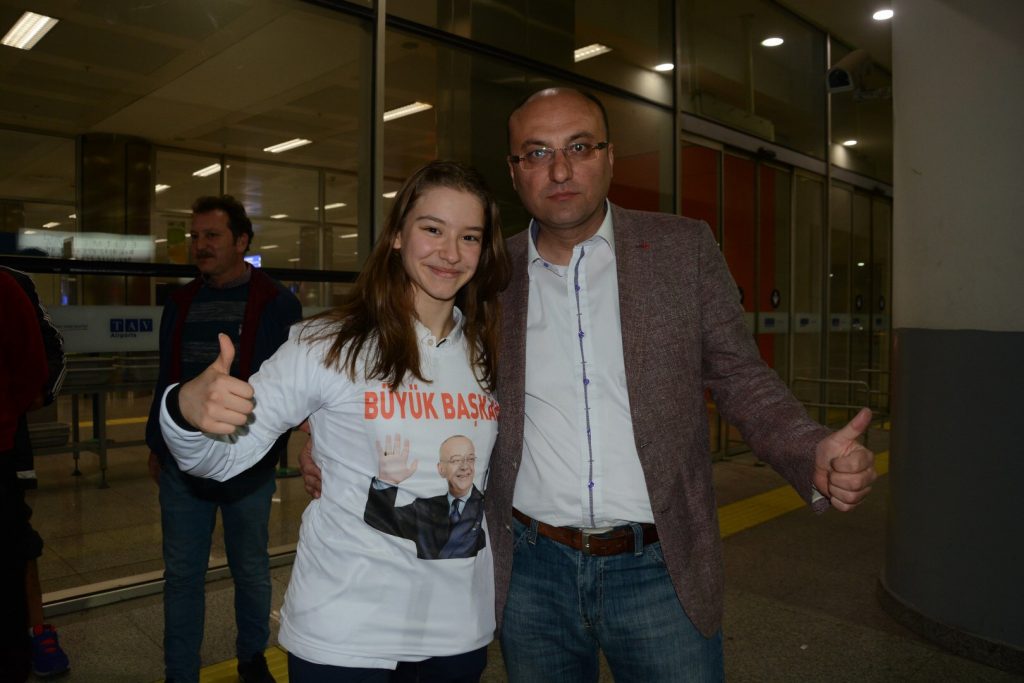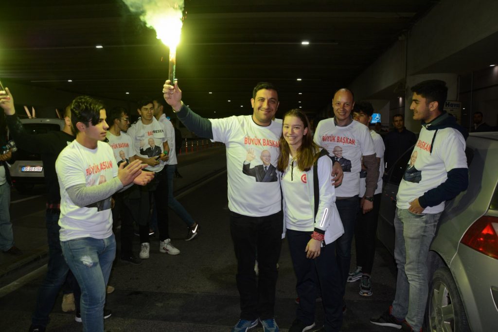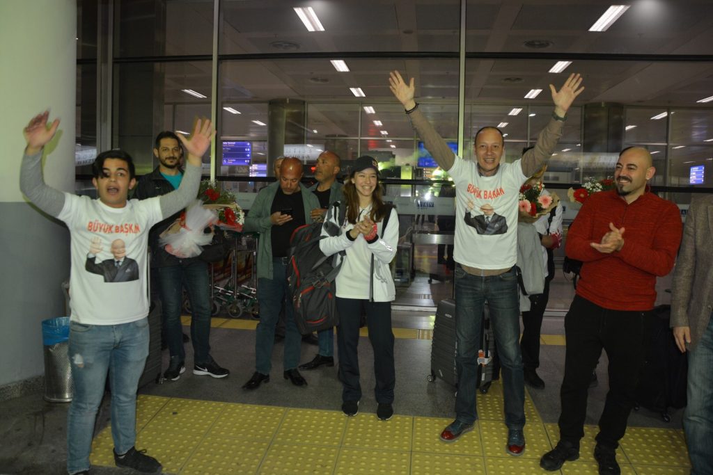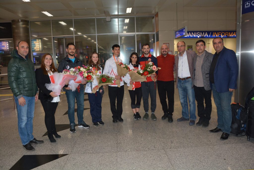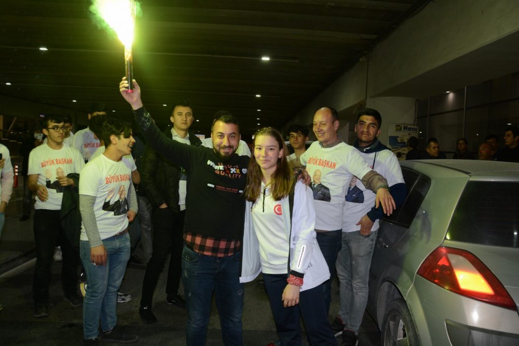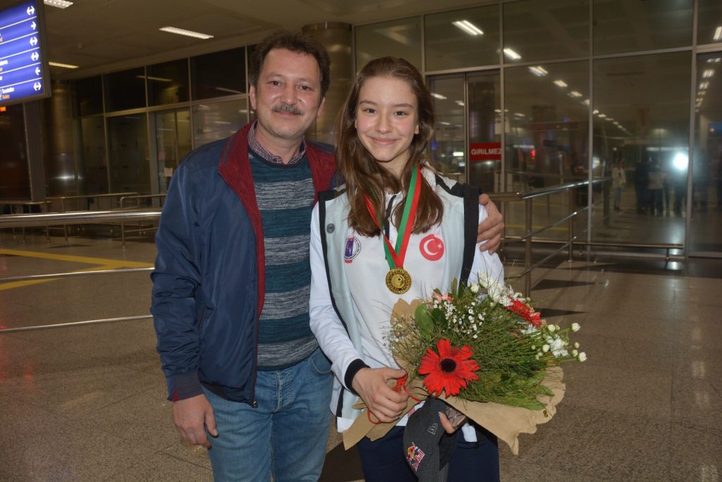 Portekiz’in Cantanhe’de kentinde düzenlenen Aerobik Cimnastik Dünya Kupası’nda ilk kez ‘Büyükler Tek Bayan Kategorisi’nde yarışan ve altın madalya kazanarak Dünya Kupası şampiyonu olan Manisa Büyükşehir Belediyespor’un “Altın Kız” lakaplı sporcusu Ayşe Begüm Onbaşı, dün gece Manisa Büyükşehir Belediyespor Yönetim Kurulu Üyesi Gökmen Aytaç, Manisa Cimnastik İl Temsilcisi Gökben Aygün Yetişen, Manisa Gençlik Spor İl Şube Müdürleri, şampiyon sporcumuzun babası Serkan Onbaşı ve Manisa Büyükşehir Belediyespor taraftarları tarafından İzmir Adnan Menderes Havaalanı’nda görkemli bir törenlekarşılandı. Dünya Kupası şampiyonu sporcumuz Ayşe Begüm Onbaşı ve Milli Takım Antrenörü Mehmet Ali Ekinci’nin apronda görülmesiyle birlikte büyük bir coşku yaşandı. Duygusal anların yaşandığı karşılama töreninde Onbaşı daha sonra “ Şampiyon” ve “ Türkiye” sloganları eşliğinde tek tek tebrikleri kabul etti. Dünya Kupası şampiyonumuz Ayşe Begüm Onbaşı’nın havaalanı çıkışı sonrasında ise davul, zurna eşliğinde oyunlar oynandı ve meşaleler yakıldı. İzmir Adnan Menderes Havaalanı’nda kendisi için düzenlenen görkemli karşılama töreninde oldukça duygulanan şampiyon sporcumuz Ayşe Begüm Onbaşı, “ Ay-yıldızlı bayrağımızı göndere çektirdiğim için gururluyum, mutluyum” dedi.