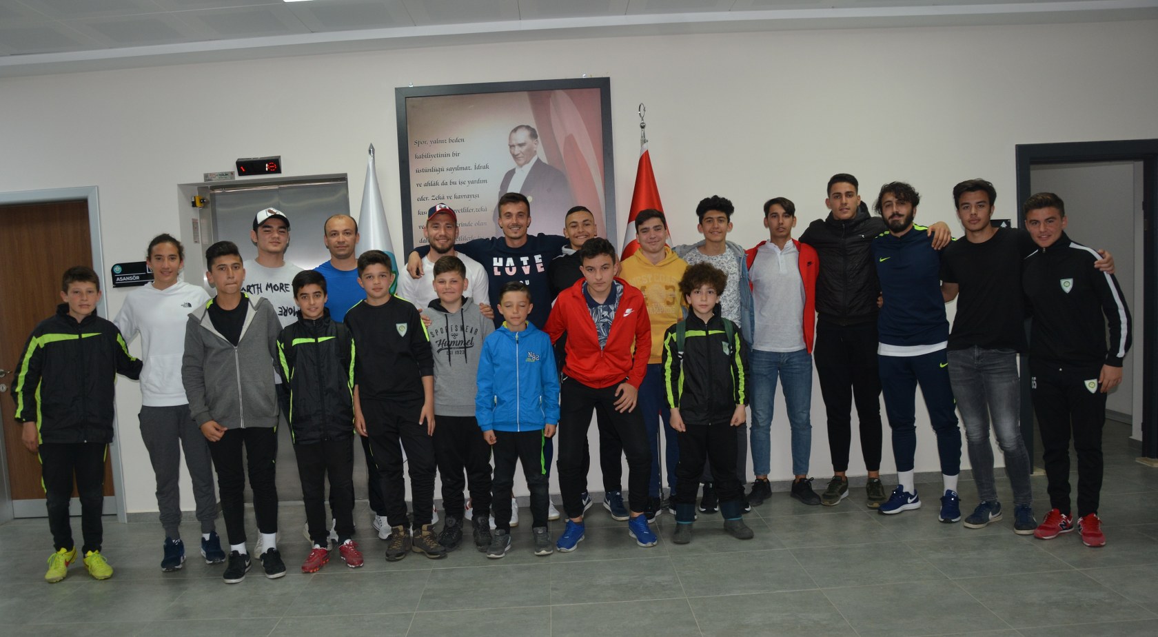 Manisa Büyükşehir Belediyespor’un başarılı kalecileri Ersel Çetinkaya ve Yusuf Balcıoğlu, altyapımızda forma giyen kalecilerle Fikri Bayrıl Spor Tesisleri’nde bir araya geldiler. Fikri Bayrıl Spor Tesisleri’nde gerçekleşen buluşmada Ersel Çetinkaya ve Yusuf Balcıoğlu altyapımızda forma giyen kalecilerle deneyimlerini paylaştılar. Kendilerine yöneltilen soruları yanıtlayan Yusuf ve Ersel, genç oyunculara özellikle çok çalışmalarını ve hayallerinin peşinden gitmelerini tavsiye ettiler.
