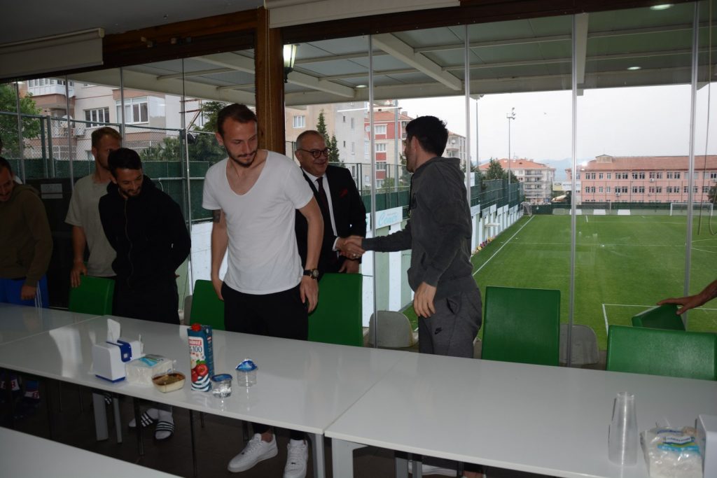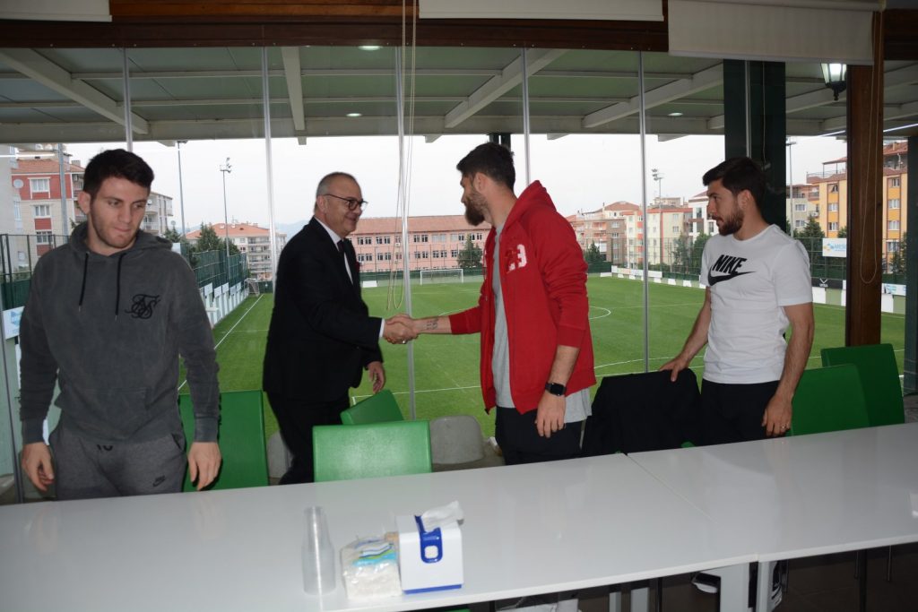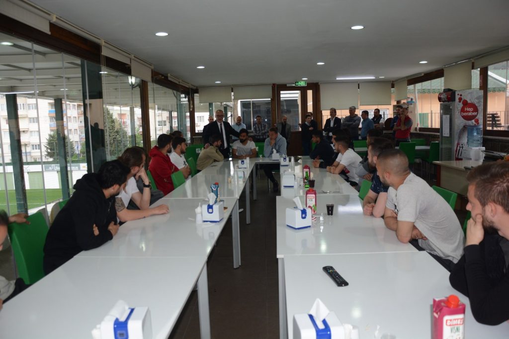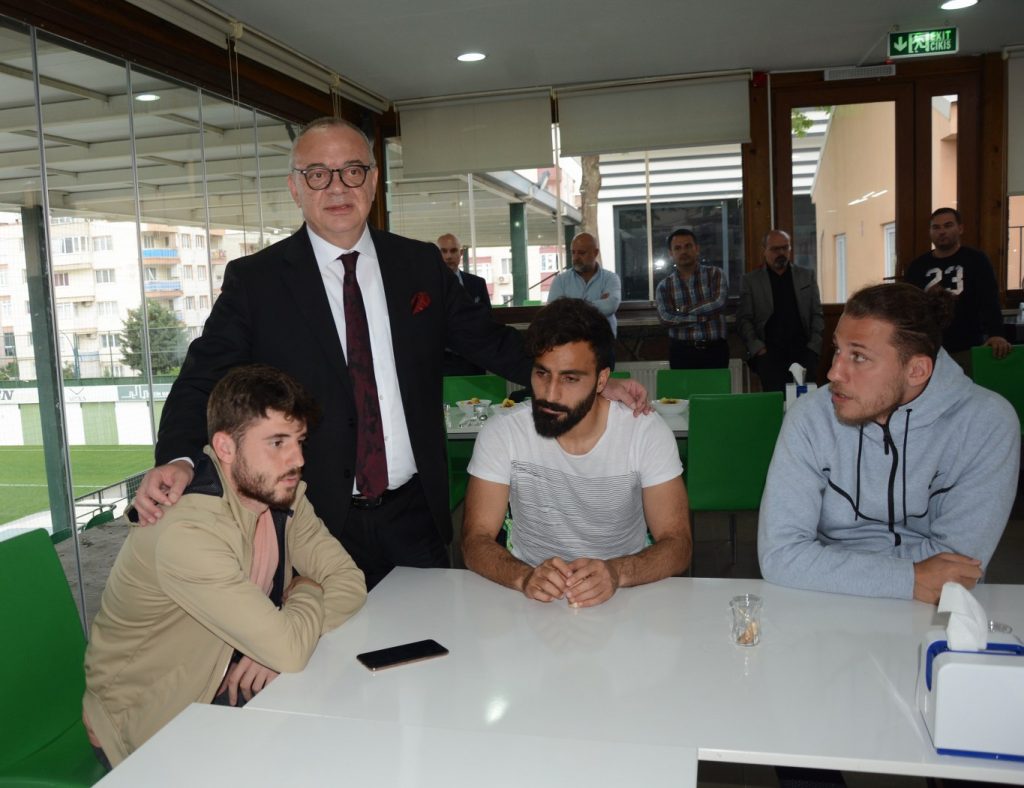 Manisa Büyükşehir Belediye Başkanı Cengiz Ergün, Halil Onultmak Spor Tesisleri’nde Manisa Büyükşehir Belediyespor’lu futbolculara ve teknik heyete moral ziyaretinde bulundu. Manisa Büyükşehir Belediyespor’un önce play-off hedefine ulaşacağını ve ardından da Spor Toto 1. Lig’e çıkacağına olan inancını ifade eden başkan Ergün, “ Hedefimiz her zaman daha güzeli ve daha iyisi. Manisa’ya geçmişte yaşattığımız güzellikleri inşallah bundan sonrada yaşatacağız. Gönül isterdi ki birinci olarak, doğrudan Spor Toto 1. Lig’e çıkalım. Ama her şey nasip, her şey şans. Üç tane daha beraberliği galibiyete çevirseydik bugün çok daha farklı şeyler konuşuyor alacaktık. Önümüzde iki maç kaldı. Bir galibiyet daha alarak play-off hedefine ulaşmamız lazım. Sonuçta yüzdük yüzdük kuyruğuna geldik. Bu takımı da yine play-off maçlarından inşallah çıkaracak olan ve hedefe götürecek olan yine sizlersiniz. Bunu başaracak güce sahipsiniz. Bunu sizlerde, bizlerde çok iyi biliyoruz. Bu ligin bana göre en iyi takımlarından bir tanesi kadro itibarıyla sizlersiniz. Zaman zaman bunu bazen şanssızlıktan, bazen de başka sebeplerden dolayı sahaya yansıtamadık. Ancak futbolda dün yoktur. Biz her zaman önümüze bakacağız, yarınlara bakacağız. Ligde iki maçımız kaldı. Alacağımız bir galibiyetle play-off’u garantileyeceğiz. Ondan sonrada tamamen sizlerden play-off maçlarına konsantre olmanızı istiyoruz. Bunu başaracak olan sizlersiniz” diye konuştu.