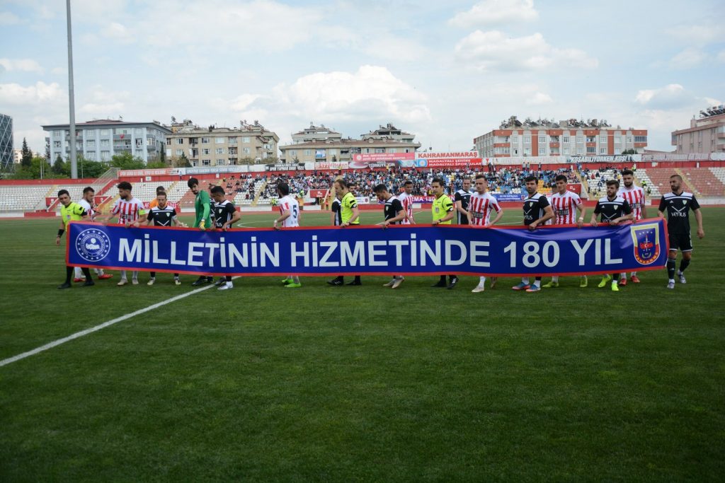 Jandarma Genel Komutanlığının 180. kuruluş yıl dönümü nedeniyle düzenlenen etkinlikte Kahramanmaraş İl Jandarma Komutanlığı tarafından maçtan önce her iki takım kaptanlarına çiçek takdim edildi. İki takım futbolcuları sahaya,‘ Milletin Hizmetinde 180 Yıl’ yazılı pankartla sahaya çıktı.