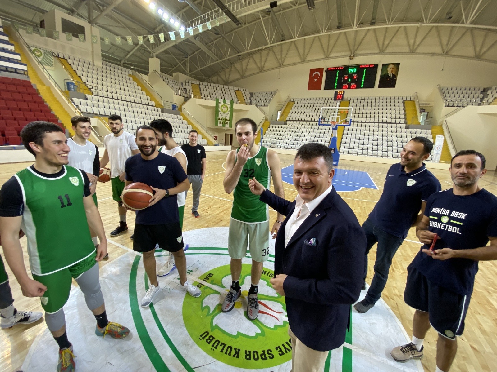 Manisa Büyükşehir Belediyespor Basketbol takımımız, hafta sonu Bursa deplasmanında karşılaşacağı Gemlik Basketbol maçının hazırlıklarını Muradiye Spor Salonu’nda yaptığı antrenmanla sürdürdü. Baş Antrenörümüz Ceyhun Cabadak yönetiminde gerçekleşen antrenmana kulüp başkanımız Mevlüt Aktan, başkan vekilimiz Engin Anlı ve Manisa Büyükşehir Yönetim Kurulu Üyelerimiz Bora Çaylan ve Ertan Korkmaz da katıldı. Baş Antrenörümüz Cabadak, teknik heyetimiz ve takımımıza Gemlik Basketbol müsabakasında başarılar dileyen kulüp başkanımız Aktan, açıklamalarda bulundu. Kulüp başkanımız Aktan, “Ligde, 3 maç oynadık ve 2 galibiyetimiz var. Güzel başladık. Pırıl pırıl gençlerden oluşan bir takım kurduk. 29 Ekim Cumhuriyet Bayramı, bizim için önemli bir gün. Gemlik maçı öncesinde de moral motivasyon olması için takımı ziyaret ediyoruz. Biz lige heyecan katmak istiyoruz. Bunun için kurduk bu takımı. İnşallah deplasmanda da galip geliriz. Ben şimdiden takımımıza başarılar diliyorum” diye konuştu. Konuşmanın ardından kulüp başkanımız Mevlüt Aktan ve yönetim kurulu üyelerimiz, dev adamlarımıza baklava ikramında bulundu.