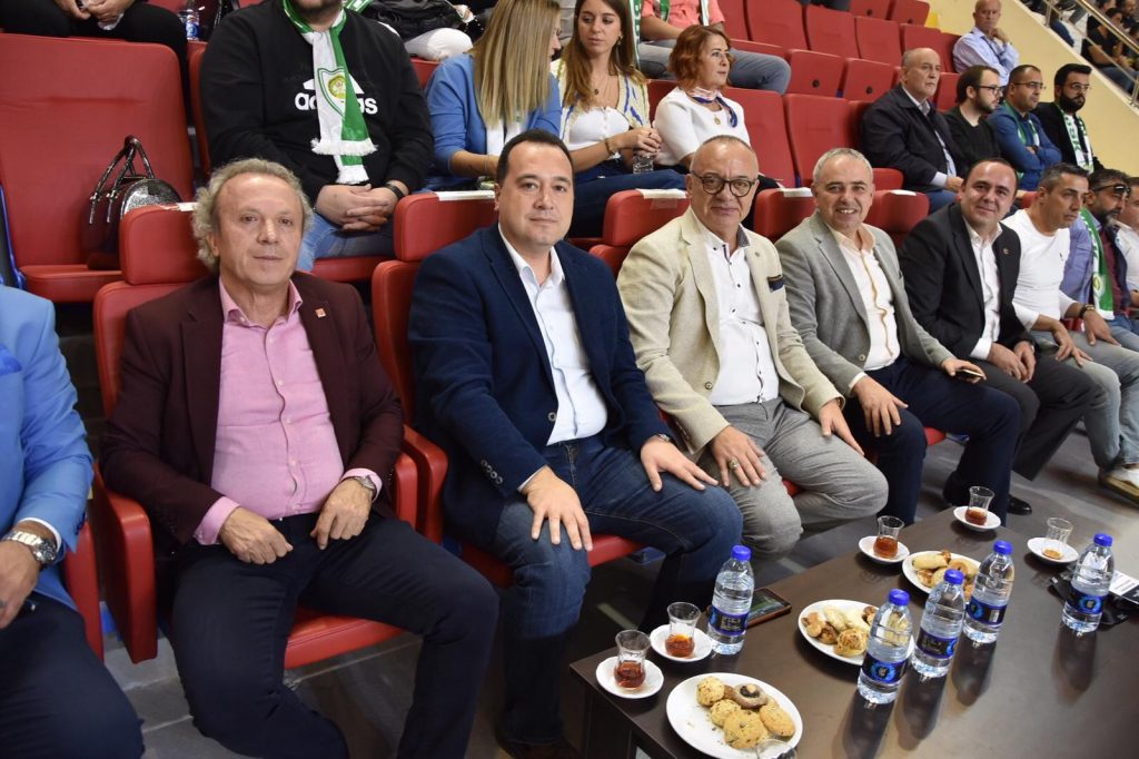 Manisa Büyükşehir Belediyespor Basketbol takımımız, Türkiye Basketbol Ligi’nin 5.haftasında bir diğer Manisa temsilcisi Akhisar Belediye ile Muradiye Spor Salonu’nda karşı karşıya geldi. Maçı, Manisa Büyükşehir Belediye Başkanı Cengiz Ergün, CHP Manisa Milletvekili Ahmet Vehbi Bakırlıoğlu, Akhisar Belediye Başkanı Besim Dutlulu, Kulüp Başkanı Mevlüt Aktan, yönetim kurulu üyeleri, Büyükşehir Belediyesi Daire Başkanları, Kulüp altyapı oyuncuları, öğrenciler ile çok sayıda taraftar izledi. Basketbola gönül veren Manisalı taraftarlar Manisa Büyükşehir Belediyespor’u yalnız bırakmadı. Baş Antrenör Ceyhun Cabadak ve oyuncular ile taraftarlar bol bol özçekim yaptı.