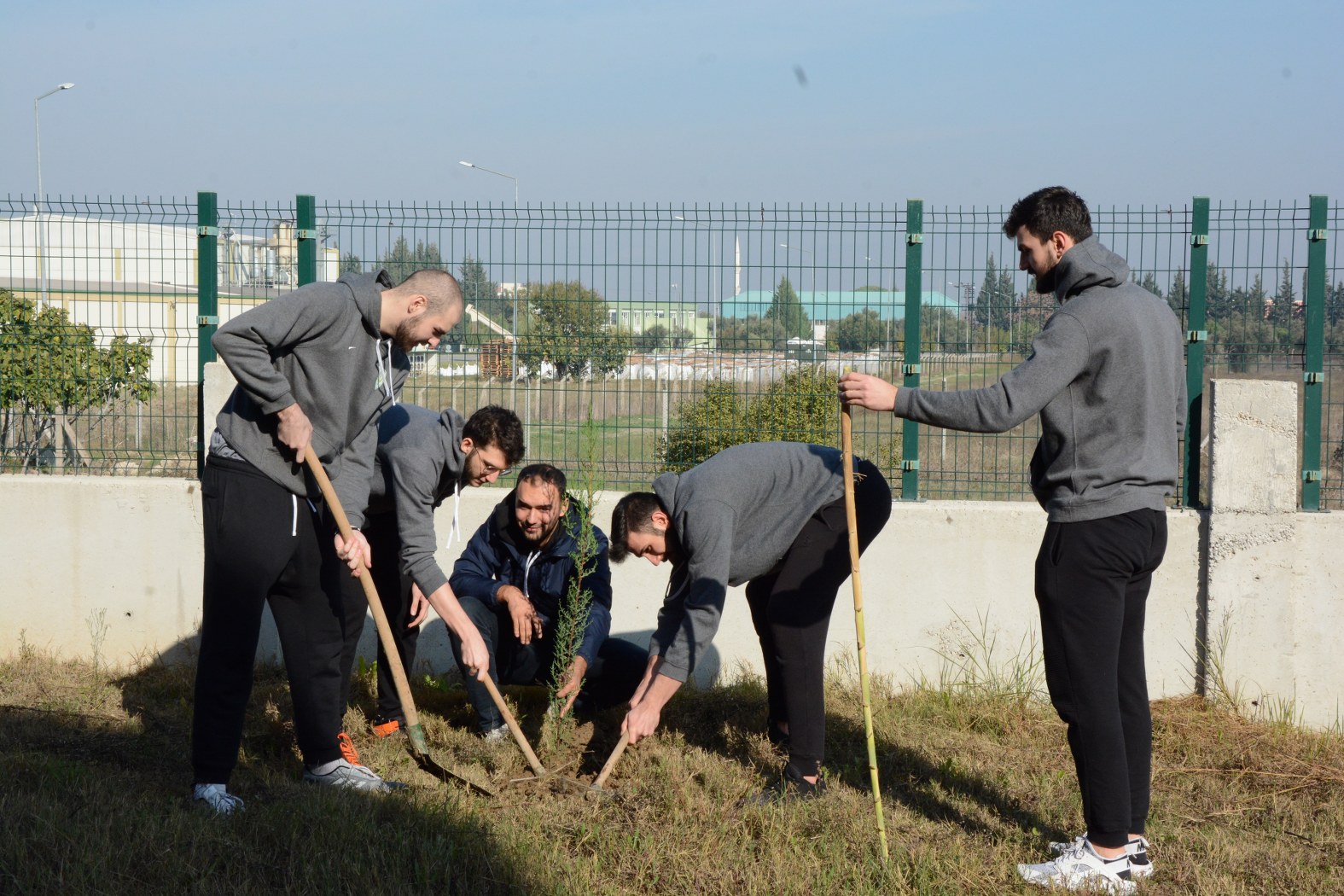 Tarım ve Orman Bakanlığının “Geleceğe Nefes” sloganıyla 81 ildeki 2 bin 23 noktada başlattığı 11 milyon fidan dikimi kampanyası ile başlayan ağaçlandırma seferberliği, geçtiğimiz hafta Türkiye Basketbol Ligi takımları arasında başlayan bir kampanya ile artarak devam etti. Bu kapsamda Manisa Büyükşehir Belediyespor Basketbol takımımız da, Fethiye Belediyespor karşısında bulduğu 63 sayıya eşdeğer 63 çam fidanı dikti. 53 fidan ağaçlandırma sahasına dikilirken, dev adamlarımız maçlarını oynadığı Muradiye Spor Salonu bahçesine de sembolik 10 çam fidanı dikti. Manisa Büyükşehir Belediyesporumuz, sezon boyunca ağaçlandırma kampanyasına devam ederek, doğanın korunmasına ve yeşil alanların artmasına destek olacak.