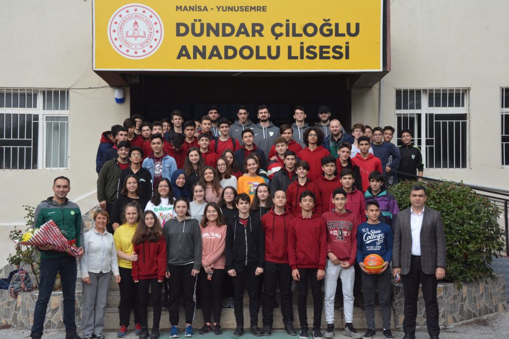 Manisa Büyükşehir Belediyespor Basketbol takımımız, sezon başında başlattığı okul ziyaretlerine Dündar Çiloğlu Anadolu Lisesi ile devam etti. Basketbol dolu bir sohbetin gerçekleştiği ziyarette, dev adamlarımız takıma ve oynadıkları maçlara ilişkin tüm merak edilen soruları içtenlikle yanıtladı.