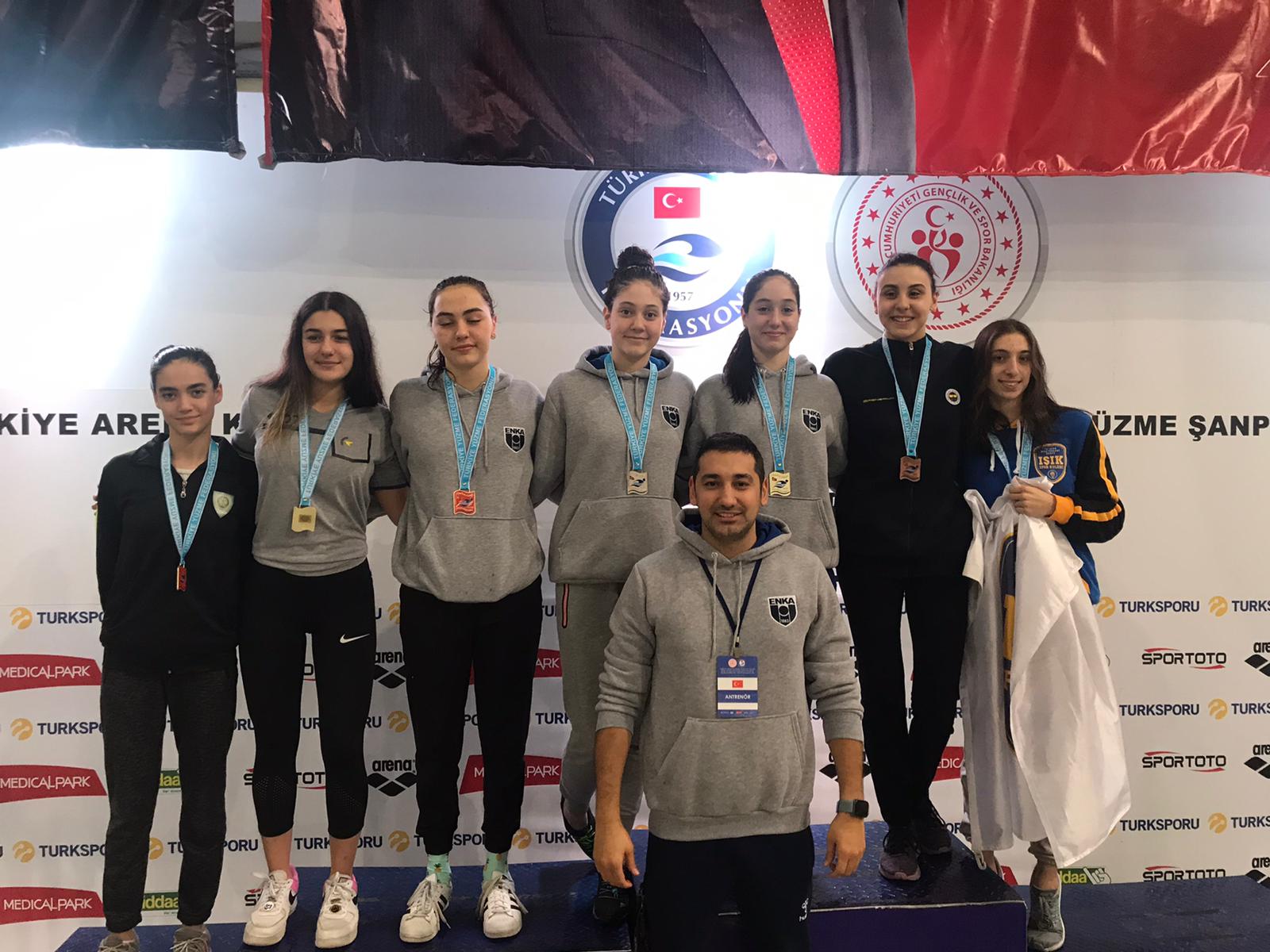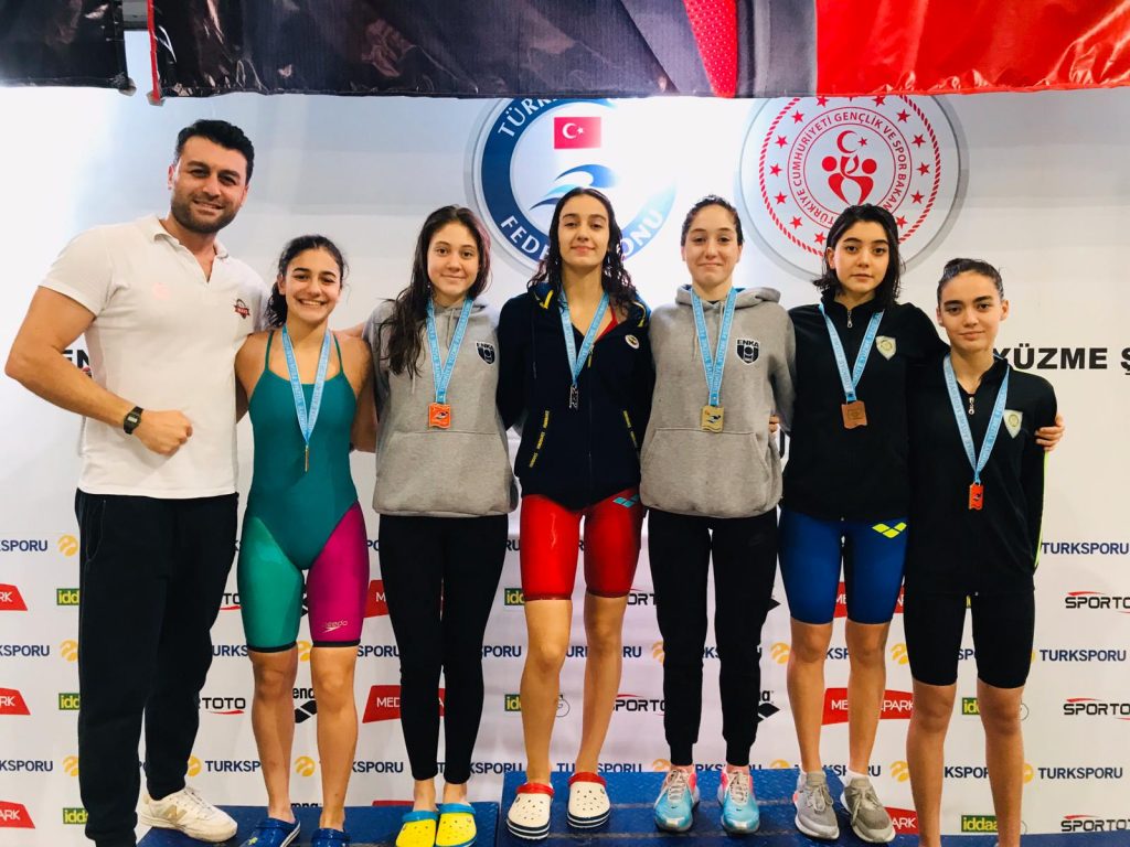 2019 yılının son günlerini yaşarken, yüzme sporcularımız önemli bir başarıya daha imza attı. Yıldız yüzücülerimiz, Türkiye Yüzme Şampiyonası’nda 1 bronz ve 3 turkuvaz madalya kazanarak, kulübümüz ve şehrimizi gururlandırdı. Sporcularımız; 50 metre serbest. 50 metre sırt üstü, 100 metre serbest ve 100 metre sırt üstü yıldızlar kategorisi kendi yaş gruplarında derecelerini geliştirerek madalyalara uzandılar. Madalyalar ve best time geliştirerek sonuçlandırdığımız Türkiye Şampiyonasını değerlendiren Yüzme Antrenörümüz Sinan Aktılav, “Turnuvada, Yıldızlar kategorisinde başarılı sonuçlar elde ettik. Sporcumuz Özlem Yetim 50 metre serbest branşında yaşında Türkiye 3’üncülüğü ve bunun yanı sıra 50 metre sırt üstü branşında yaşında Türkiye 3’sü oldu. Sporcumuz Nehir Toker, 100 metre sırt üstü branşında ve 100 metre serbest branşında yaşında Türkiye 5’liği aldı. Toplamda 4 madalya; 1 Türkiye A Finali, 5 Türkiye B Finali ve 2 Türkiye C Finali yaptık. Sporcularımız, başarılı sonuçlar ve en iyi zamanları ile turnuvayı tamamladı” diye konuştu.
