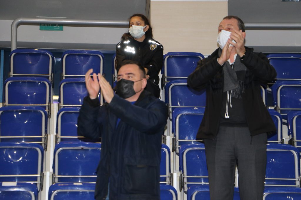 Türkiye Basketbol Ligi’nin 27.haftasında Manisa Büyükşehir Belediyespor, Ankara temsilcisi Anadolu Basket takımı ile karşılaştı. Maçı Basketbol Şube Sorumlusu Bora Çaylan da izledi. İlk periyot 22-18 Anadolu Basket üstünlüğü ile geçildi. İkinci periyotta pota altında daha hızlı sayı bulan dev adamlarımız bu periyottan da 39-31 geri ayrıldı. Üçüncü periyotta rakibi ile arasındaki sayı farkını tek hanelere düşüren dev adamlarımız bu periyottan 57-52 geri ayrıldı. Son periyotta adeta yeniden oyuna başlayan dev adamlarımız özellikle Marcus’un etkili oyunu ve takımın muhteşem organizasyonu ile maçtan 67-77 galip ayrıldı.