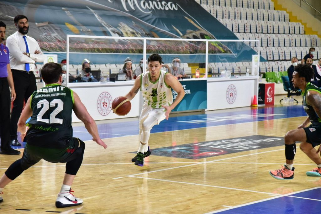 Manisa Büyükşehir Belediyespor Basketbol takımımız, Türkiye Basketbol Liginin 29.hafta erteleme maçında Balıkesir Büyükşehir Belediyespor ile Muradiye Spor Salonunda karşı karşıya geldi. Maçı yönetim kurulu üyeleri de izledi. Maçın ilk yarısında kontrollü oynayan dev adamlarımız, soyunma odasına 47-43 önde gitti. Maçın ikinci yarısında rakibini hem ataklarda hem de pota altında zorlayan dev adamlarımız son 8 saniye kala Marcus’un basketi ile öne geçsede Balıkesir son saniyede bulduğu üçlük ile öne geçti. Son saniyede rakibin topu eli uzaklaştırması teknik faul sayılmadı ve faul verilmedi maç Balıkesir’in 85-83 üstünlüğü ile bitti. Dev adamlarımız yenilmesine rağmen Play-off’a kaldı ve Samsunspor ile eşleşti.