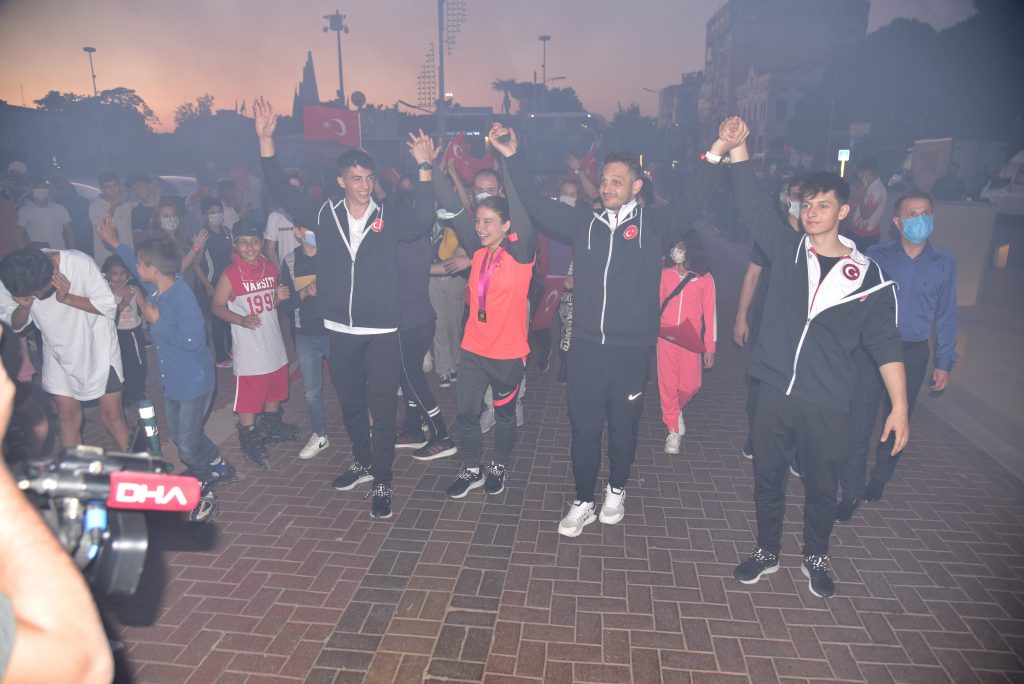 Manisa Büyükşehir Belediyespor bünyesinde yetişen ve Aerobik Cimnastik Dünya Şampiyonası’nda altın madalya kazanarak tarihi bir başarıya imza atan Ayşe Begüm Onbaşı, şampiyonanın ardından geldiği Manisa’da coşkuyla karşılandı. Şampiyon sporcuyu karşılayan Manisa Büyükşehir Belediye Başkanvekili Mehmet Güzgülü, Onbaşı ve antrenörü Mehmet Ali Ekin’e altın hediye ederken, Manisa Büyükşehir Belediyespor Yönetim Kurulu Üyesi Gökmen Aytaç da Ayşe Begüm Onbaşı’na hediye takdiminde bulundu.