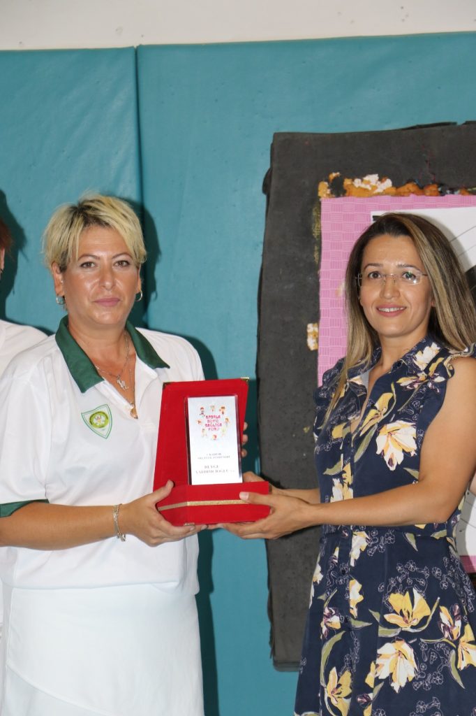Manisa Büyükşehir Belediyespor Yönetim Kurulu Üyesi Orhan Haşim Elmalı da proje kapsamında plaketle ödüllendirilen Duygu Yardımcıoğlu’ndan övgüyle bahsetti. Elmalı, “Manisa’da adını antrenörlerin antrenörü olarak adını duyuran, okçuluk branşınıkulübümüze kazandıran ve kulübümüzde birçok sporcununyetişmesine vesile olan; Duygu Yardımcıoğlu hocamıza çok teşekkür ediyorum. Aldığı ödülden ötürü tebrik ediyorum” diye konuştu. Konuşmaların ardından Atatürk Ayser Kani Çelikel İlkokulu Müdür Yardımcısı Sinem Altun, kul Öncesi ÖğretmenleriDilek Tatlı ve Funda Aşık, Okçuluk Antrenörü Duygu Yardımcıoğlu’na plaket takdiminde bulundular.