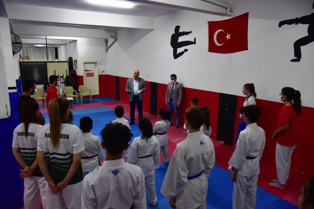 Antrenör Ali Eşsiz’den çalışmalar hakkında bilgi alan Manisa Büyükşehir Belediyespor Başkanı Mehmet Güzgülü, sporcularımıza başarılar diledi. Büyükşehir Belediye Başkanı Cengiz Ergün’ün selamlarını ileterek, Büyükşehir Belediyespor’un 15 branşta 5 bine yakın sporcu ile faaliyetlerini sürdürdüğünü dile getiren Mehmet Güzgülü, “Karate, kulübümüzde yeni kurulan bir branş olmasına rağmen, kısa sürede önemli başarılar elde etti. Bu başarılarda emeği geçen antrenörümüz ve sporcularımızı kutluyorum. Bundan sonraki süreçte de başarılarınızın devamını diliyoruz” ifadelerini kullandı.