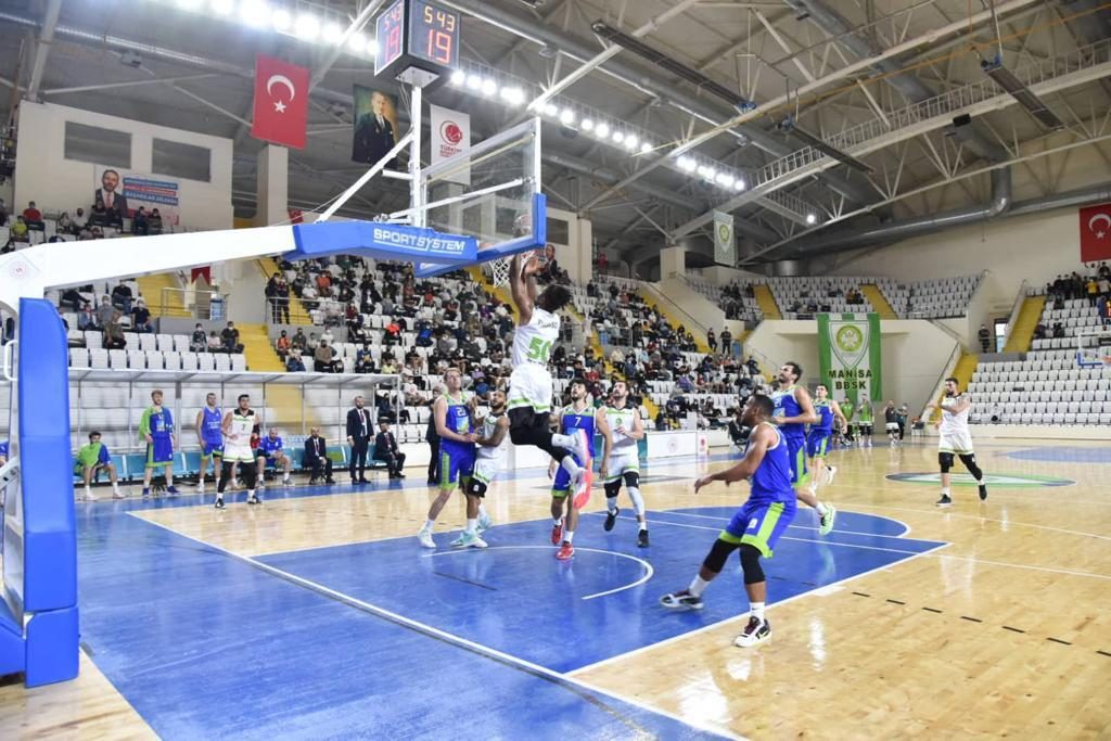 Manisa Büyükşehir Belediyespor Basketbol Takımı, Türkiye Basketbol Ligi 2’inci hafta mücadelesinde Fethiye Belediyespor’u Muradiye Spor Salonu’nda ağırladı. Manisa’nın yeşil-beyazlı dev adamları bir ara 21 sayılık üstünlüğü yakaladığı maçı ikinci yarıda zora soksa da 83-80’lik skorla kazanarak bu sezonki ilk galibiyetini aldı.