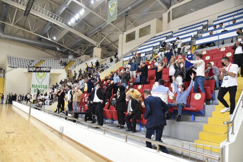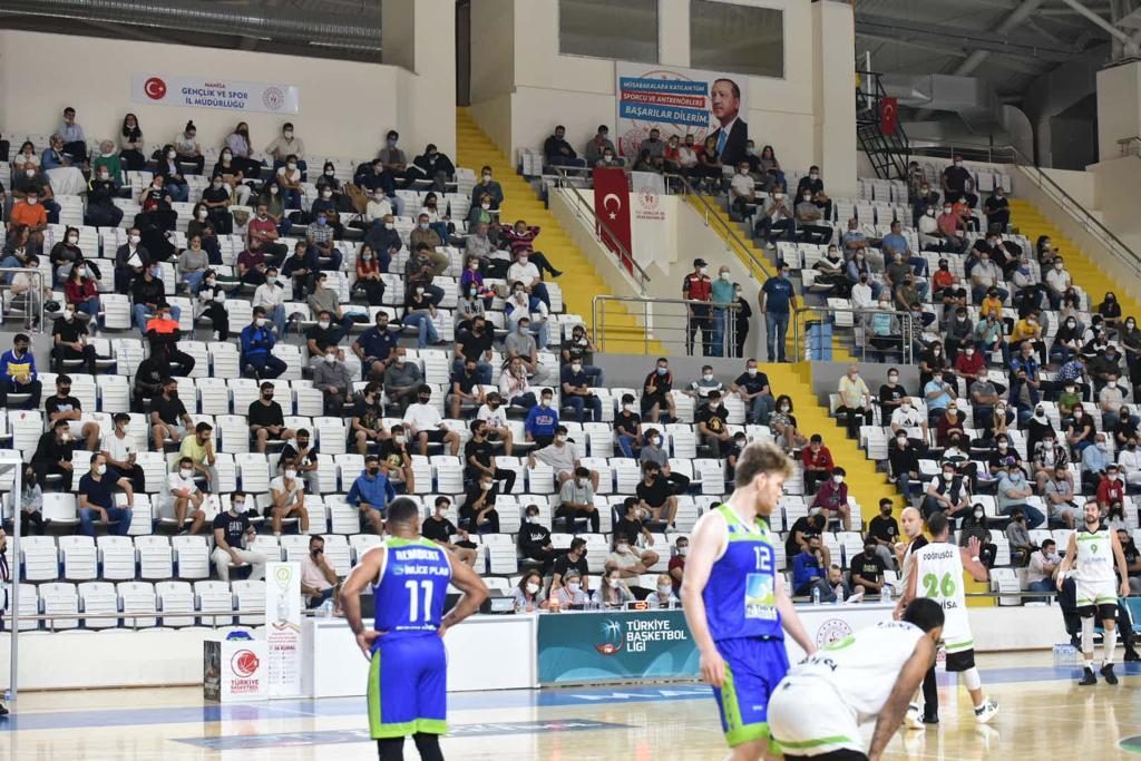Türkiye Basketbol Ligi’nde mücadele eden Manisa Büyükşehir Belediyespor Basketbol Takımı, 2021-2022 sezonundaki ilk iç saha maçında Muradiye Spor Salonu’nda Fethiye Belediyespor’u ağırladı. Mücadeleyi; Manisa Valisi Yaşar Karadeniz, Manisa Büyükşehir Belediyespor Kulüp Başkanı Mehmet Güzgülü, Manisa Futbol Kulübü Başkanı Mevlüt Aktan, Manisa Büyükşehir Belediyespor Yönetim Kurulu Üyeleri, MHP Manisa İl Başkanı Murat Öner, Ülkü Ocakları Manisa İl Başkanı Nazmi Akçay, MHP Şehzadeler İlçe Başkanı Şener Özten ve Manisa FK’lı futbolcularda tribünde takip etti. Maçın ilk dakikaları karşılıklı basketlerle geçilirken skorda üstünlüğü ele geçiren yeşil-beyazlı ekip ilk periyodu 23-16 önde geçti.