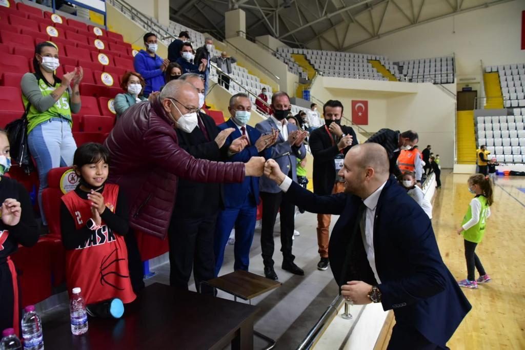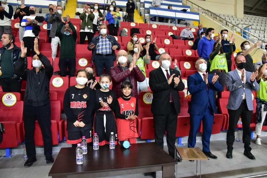 Türkiye Basketbol Ligi’nde mücadele eden Manisa Büyükşehir Belediyespor Basketbol Takımı, 5’inci hafta maçında evinde HDI Sigorta Antalya Güneşi’ni ağırladı. Mücadeleyi MHP Grup Başkan Vekili ve Manisa Milletvekili Erkan Akçay, Manisa Büyükşehir Belediye Başkanı Cengiz Ergün ve eşi Şeyda Ergün, MHP Manisa İl Başkanı Murat Öner, Ülkü Ocakları İl Başkanı Nazmi Akçay, MHP Şehzadeler İlçe Başkanı Şener Özten, Basketbol Şube Sorumlusu Bora Çaylan ve yönetim kurulu üyeleri de tribünde takip etti. Karşılıklı sayılar ile başlayan ilk periyodu yeşil-beyazlı temsilcimiz 21-16 önde geçti. İkinci periyot dengeli bir oyuna sahne olurken soyunma odasına önde giden taraf 36-33’lük skorla Manisa BBSK oldu.