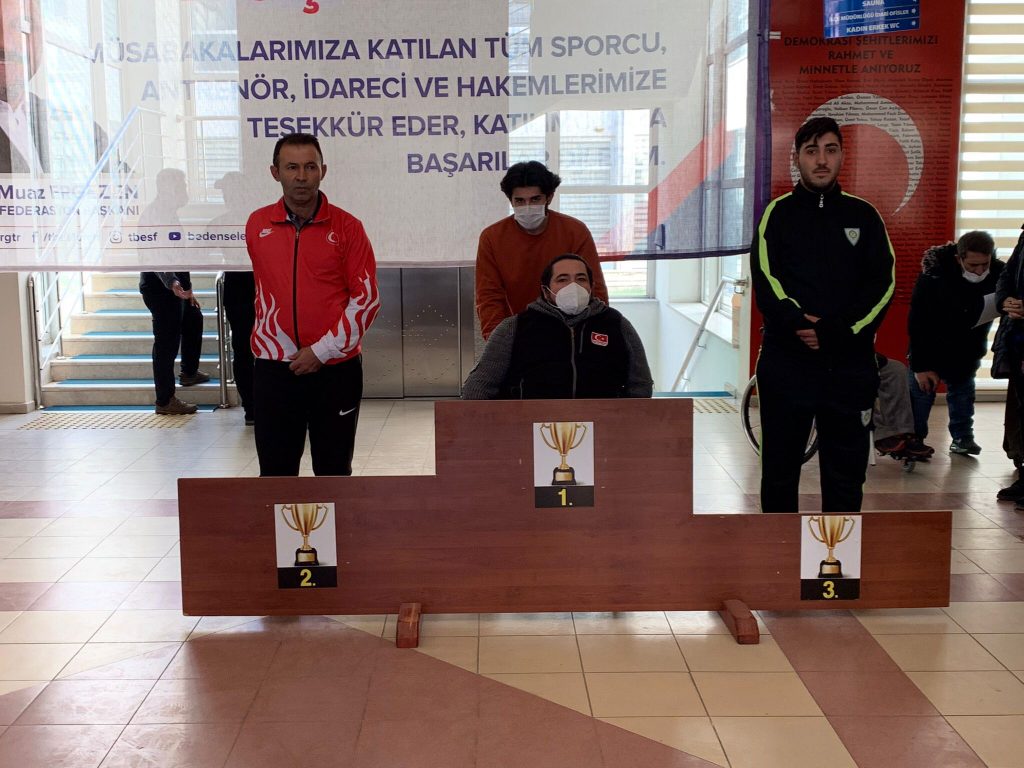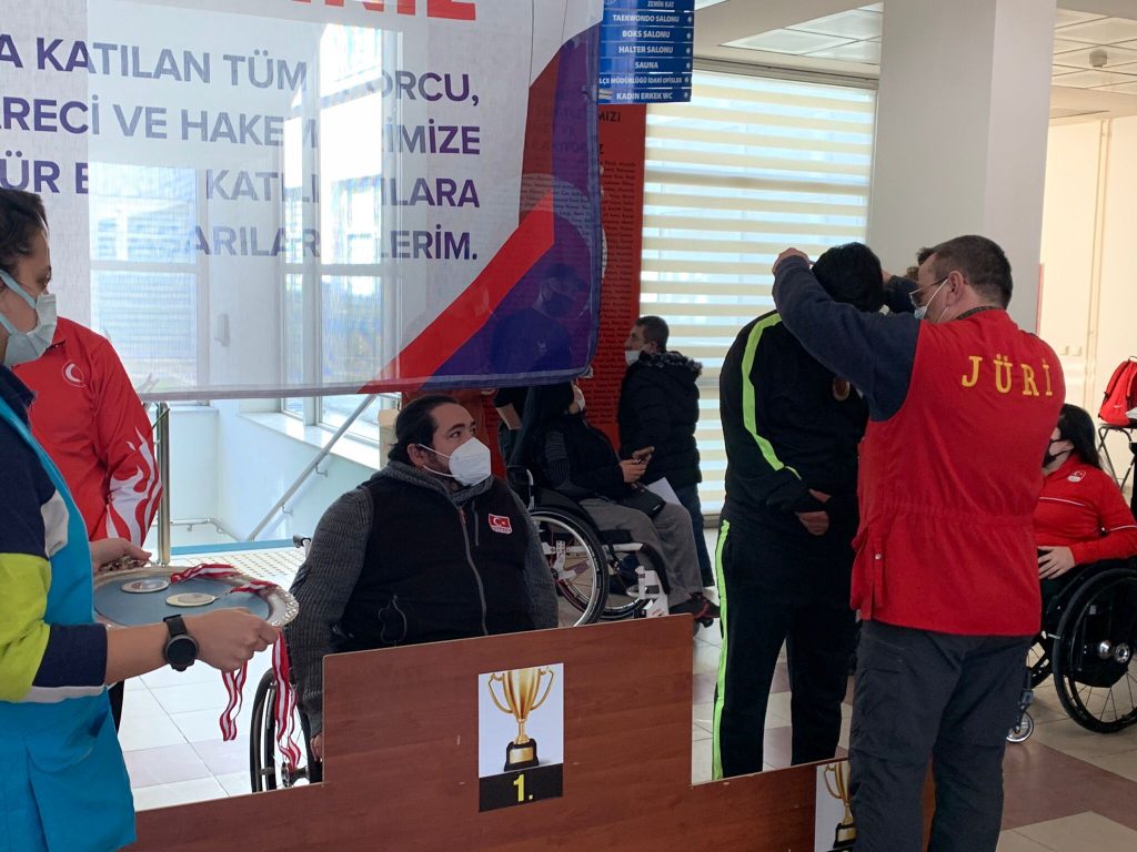 Türkiye Bedensel Engelliler Federasyonu tarafından Ankara Eryaman Olimpiyat Hazırlık Merkezi’nde düzenlenen Türkiye Şampiyonası’nda, Manisa Büyükşehir Belediyespor sporcusu Samet Akça, gururumuz oldu. 60 sporcunun katılımıyla gerçekleşen şampiyonada Manisa Büyükşehir Belediyespor Atıcılık takımı sporcusu Samet Akça, R5 kategorisinde 613.9 puan toplayarak Türkiye üçüncüsü olmayı başardı. Bronz madalya kazanan Akça, büyük mutluluk yaşadı. Atıcılık takımı antrenörleri Şekip Taner Bakal ve Çağrı Tangör, Akça’nın Milli Takım aday kadrosunda olduğunu belirterek, Milli Takım kadrosunda yer almak için sıkı bir çalışma programı uyguladıklarını dile getirdiler. Manisa Büyükşehir Belediyespor Başkan Yardımcısı Hakan Kadayıfçılar da, Akça’yı başarısından dolayı tebrik etti.