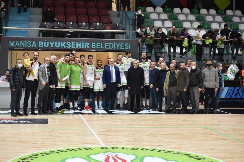 Türkiye Basketbol Ligi’nde mücadele eden Manisa Büyükşehir Belediyespor Basketbol Takımı, Mamak Belediyesi engelini 90-82’lik skorla geçti. Taraftarının müthiş desteği ile yeni evinde galip gelen Manisa’nın Dev Adamları liderliğini korudu. Manisa Büyükşehir Belediye Başkanı Cengiz Ergün de kritik mücadeleyi tribünde takip etti.
