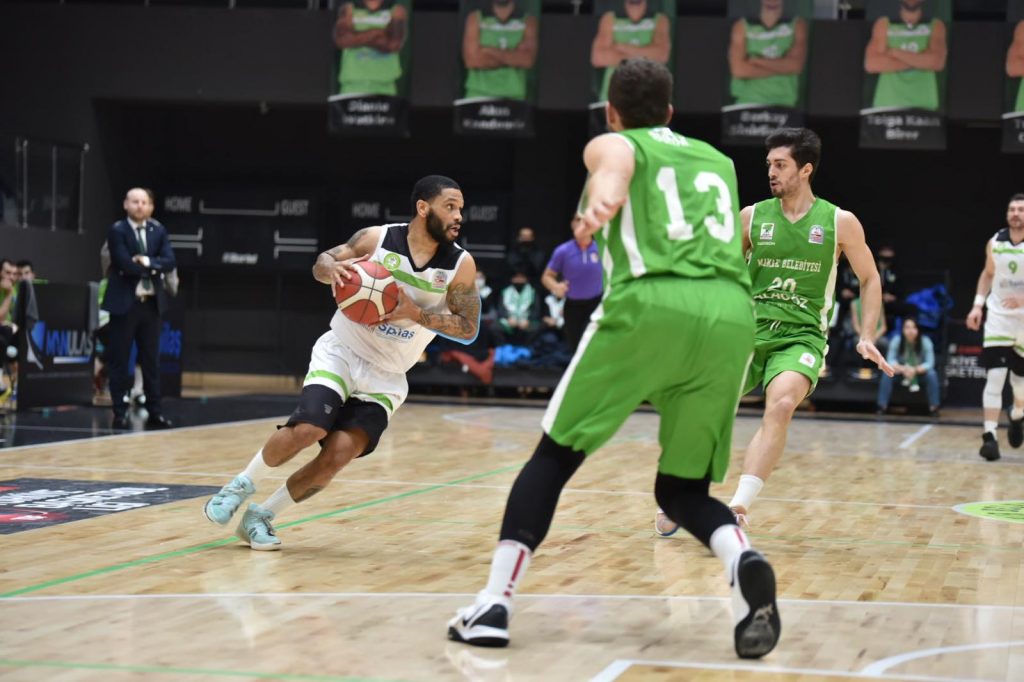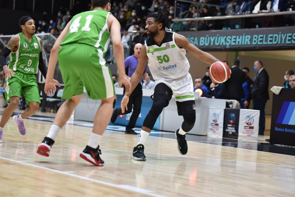 İlk çeyreğe iyi başlayan taraf olan Manisa’nın Dev Adamları, son anlarda yaptığı basit hatalar sonrasında rakibine yakalandı. İlk çeyrek 20-20 sona erdi. İkinci periyotta oyuna iyice ağırlığını koyan yeşil-beyazlı ekip, çeyreği 27-15, ilk yarıyı da 47-35 önde kapattı.