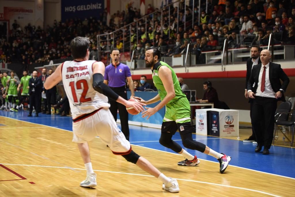 Türkiye Basketbol Ligi’nde mücadele eden Manisa Büyükşehir Belediyespor Basketbol Takımı, haftanın en önemli maçında deplasmanda Samsunspor ile karşı karşıya geldi. Mücadeleyi Basketbol Şube Sorumlusu Bora Çaylan da tribünde takip etti. Karşılaşmaya hücumda iyi başlayamayan yeşil-beyazlı dev adamlar 13-0’luk skorla geriye düştüğü birinci periyotta oyunu dengeye getirmeyi başardı. İlk periyot 21-15’lik skorla Samsunspor’un üstünlüğü ile sonuçlandı. İkinci periyotta oyuna ağırlığını koyan Manisa’nın yeşil-beyazlı temsilcisi 20-15’lik skorla devreye girerken farkı 1 sayıya indirmeyi başardı. İlk yarı 36-35 sona erdi. Mustafa Baki Görür ilk yarıda bulduğu 10 sayı ile çift haneye ulaştı. Tolga Kaan Birer de 5’te 4 saha içi isabetiyle ilk yarıyı 8 sayı ile tamamlayarak öne çıkan bir diğer oyuncu oldu.