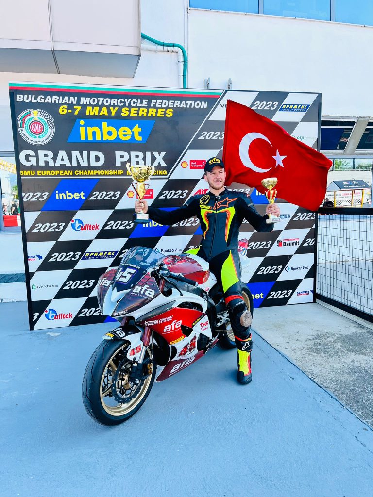 Manisa Büyükşehir Belediyespor’un milli motosiklet yarışçısı Furkan Eryılmaz, BMU Avrupa Şampiyonasının 6-7 Mayıs tarihlerinde Yunanistan’da düzenlenen süperport 600 cc grubunda bir üçüncülük ve bir birincilik ile Türk Bayrağını göndere çektirip İstiklal Marşı’nı okutmayı başardı.