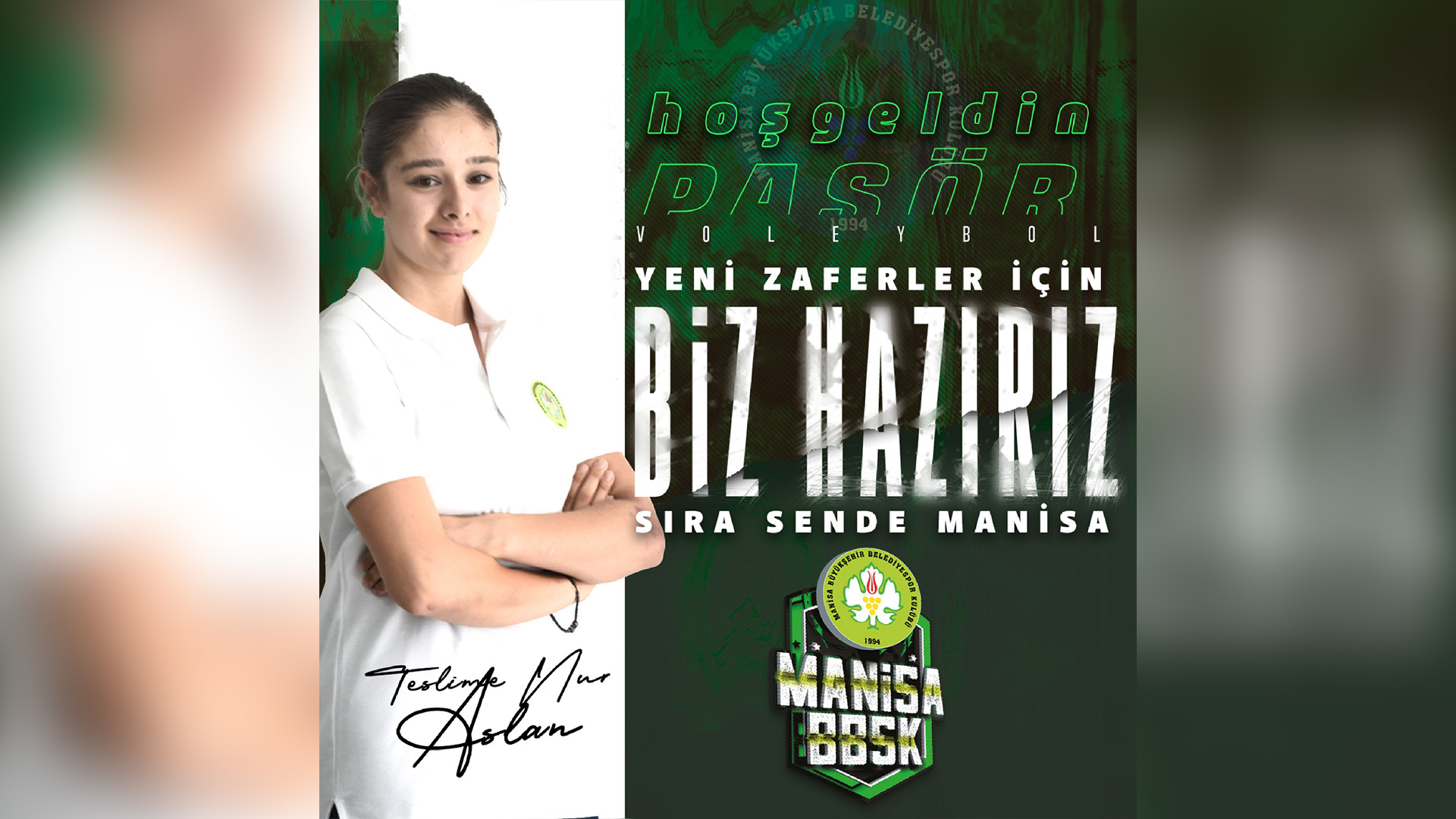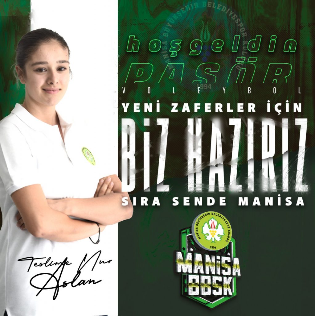 2023-2024 sezonunda Türkiye Voleybol Federasyonu 2. Ligi’nde mücadele edecek olan Manisa Büyükşehir Belediyespor 2005 doğumlu genç isim Pasör Teslime Nur Aslan’ı renklerine bağladı.