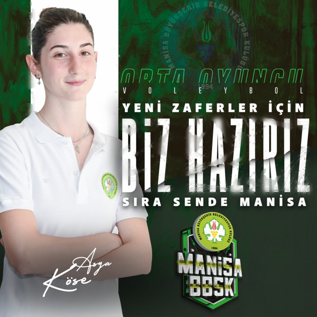 2023-2024 sezonunda Türkiye Voleybol Federasyonu 2. Ligi’nde mücadele edecek olan Manisa Büyükşehir Belediyespor, takımın altyapı kadrosunda yetişen 2004 doğumlu orta mevkii oyuncusu Asya Köse’yi renklerine bağladı.