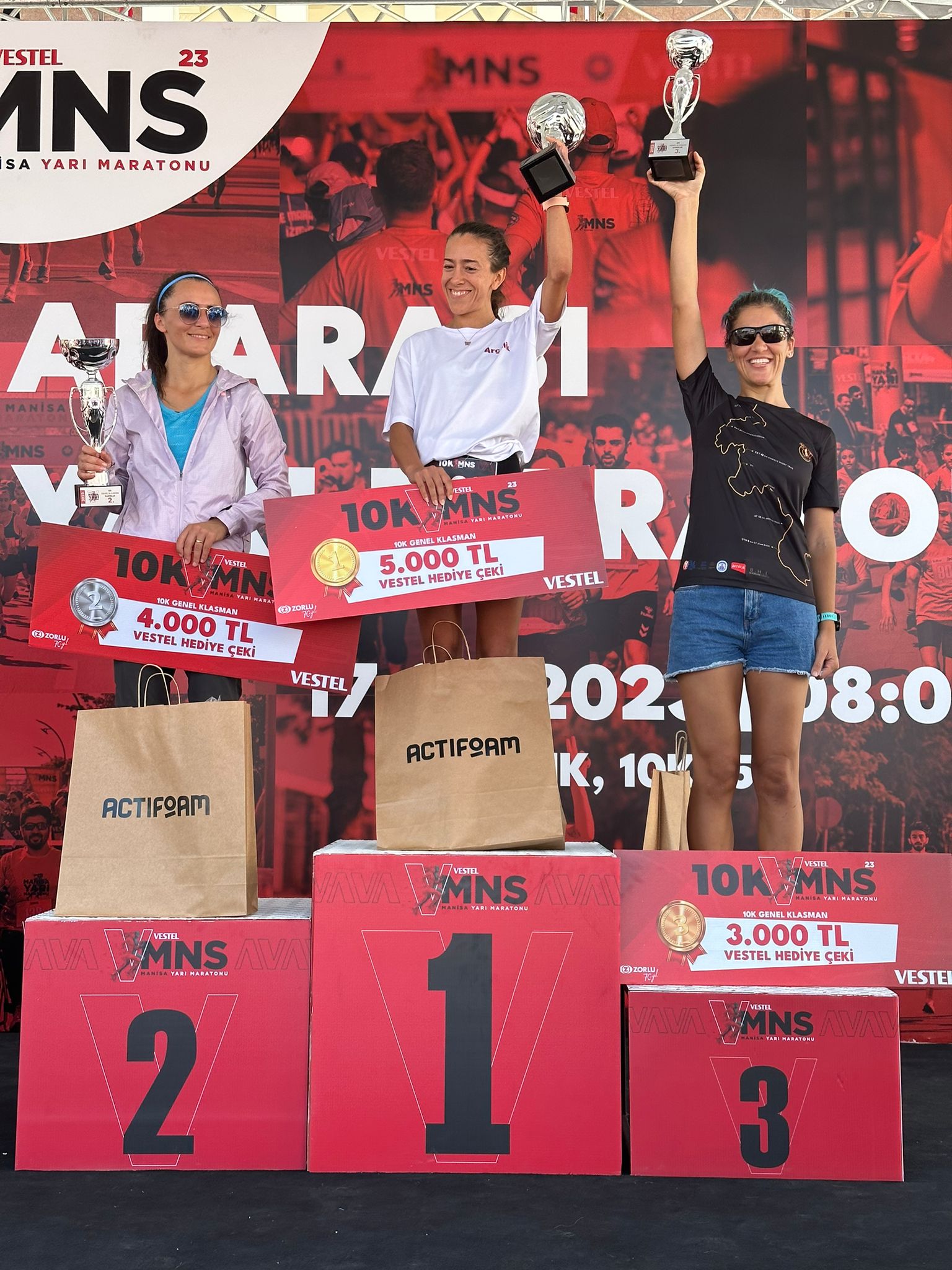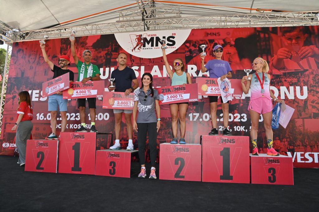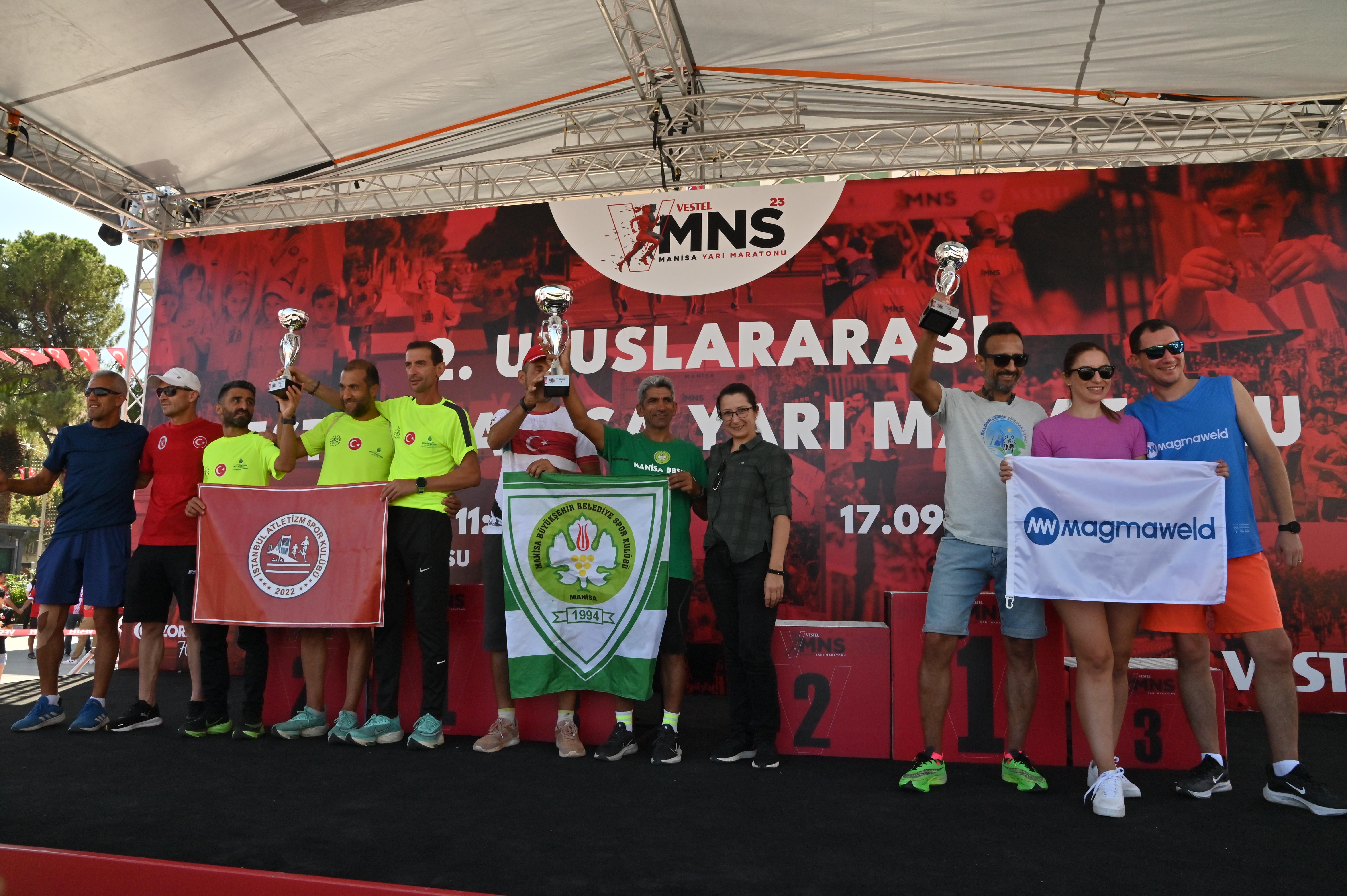 Uluslararası Vestel Manisa Yarı Maratonu’nun ikincisi, Manisa Büyükşehir Belediyesi, Vestel, Türkiye Atletizm Federasyonu ve paydaş kurumların işbirliğinde gerçekleştirildi. 5, 10 ve 21 kilometrelik 3 etapta düzenlenen Yarı Maratonun startı Manisa Valisi Enver Ünlü, Manisa Büyükşehir Belediyesi Genel Sekreter Yardımcısı Ergün Aksoy, Vestel CEO’su Ergün Güler ve protokol üyeleri tarafından verildi. Yaklaşık 2 bin kişinin katıldığı organizasyonda Manisa Büyükşehir Belediyespor’lu atletler Ahmet Bayram ve Özlem Işık, başarılarıyla yine adından söz ettirdi. 21 kilometrelik parkuru 1 saat 16 dakikada tamamlayan Ahmet Bayram, 45-49 yaş grubunda yine şampiyon olurken, genel klasmanda yedinci sırada yer aldı. 10 kilometrelik parkuru 45 dakika 31 saniyede tamamlayan Özlem Işık da kadınlarda üçüncü oldu.