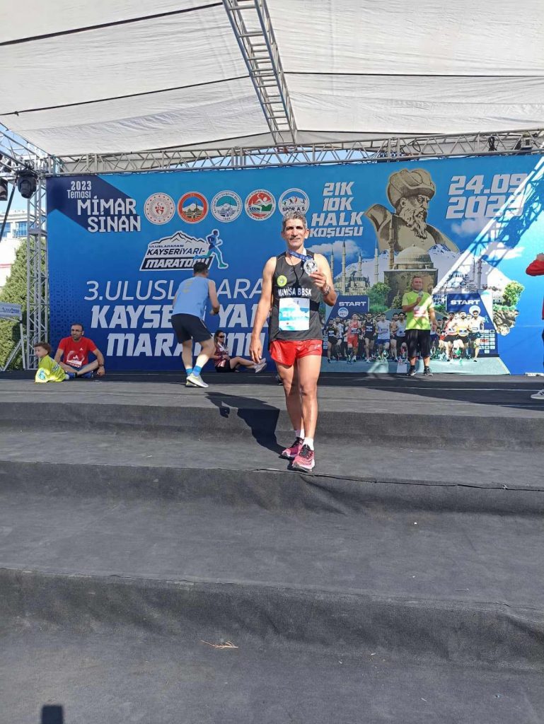 Manisa Büyükşehir Belediyespor’un başarılı atleti Ahmet Bayram, bu yıl 3’üncüsü düzenlenen Uluslararası Kayseri Yarı Maratonu’nda 45-49 yaş grubunda yine şampiyon oldu.