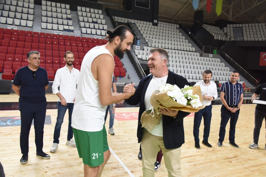 Manisa Büyükşehir Belediyespor Basketbol takımının antrenmanını Manisa FK Başkanı Mevlüt Aktan ziyaret etti. Ziyarette, Manisa FK Asbaşkanı Engin Anlı, Manisa FK ile Manisa BBSK Yönetim Kurulu Üyeleri de yer aldı. Manisa BBSK Başkanı Bora Çaylan’ın karşıladığı Başkan Mevlüt Aktan, teknik ekip ve oyunculara yeni sezonda başarılar diledi. Aktan, “Manisa dinamik bir şehir. Basketbol Şubesinin temellerini atmamızın ardından gün gün büyüyen şube bugün Avrupa Kupası oynayacak seviyeye geldi. Emeği geçen herkese teşekkür ederim” dedi. Aktan ayrıca, takıma baklava ikramında da bulundu.
