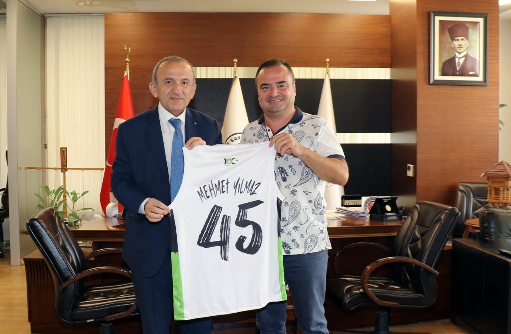 Manisa Büyükşehir Belediyespor Kulübü Başkanı Bora Çaylan, Manisa Ticaret ve Sanayi Odası Başkanı Mehmet Yılmaz’ı ziyaret ederek, yeşil-beyazlı takımın formasını hediye etti. Çaylan, Yılmaz’ı 29 Eylül Cuma günü saat 19.00’da oynanacak maça davet etti.
