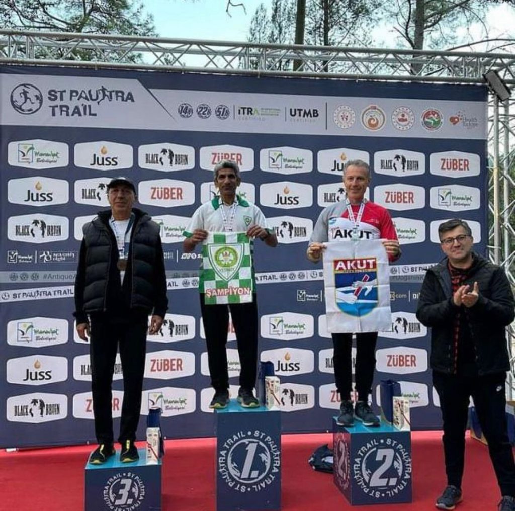 Manisa Büyükşehir Belediyespor’un başarılı atleti Ahmet Bayram, Antalya Manavgat’ta düzenlenen St. Paul Ultra Trail Koşusu’na katıldı. 14 km, 22 km ve 53 km olarak düzenlenen yarışlara yoğun ilgi gösterildi. 53 kilometrelik zorlu parkurda koşan Ahmet Bayram, yarışı 6 saat 34 dakikada tamamladı. 50+ yaş kategorisinde 1’inci olarak zirveye yerleşen Bayram, genel klasmanda 6’ncı sırada yer aldı. Manisa’yı ve Manisa Büyükşehir Belediyespor’u başarıyla temsil eden Bayram, madalya koleksiyonuna bir yenisini daha eklemenin sevincini yaşadı. Kürsüde yeşil beyazlı bayrakla poz veren yeşil beyazlı atlet, anı ölümsüzleştirdi.