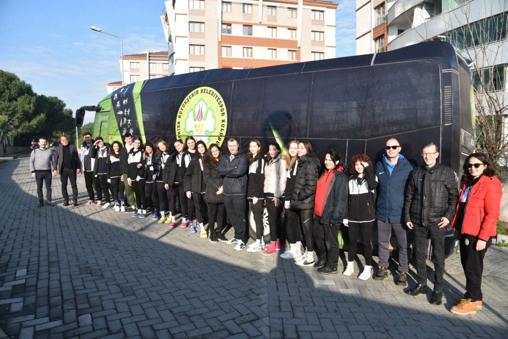 Türkiye Voleybol Federasyonu (TVF) Kadınlar 2. Ligini lider bitiren Manisa Büyükşehir Belediyesi Kadın Voleybol Takımı, 1. Lig yolunda Kütahya’da play-off müsabakalarına çıkacak. 16-18 Şubat tarihleri arasında gerçekleştirilecek olan play-off müsabakaları öncesinde yeşil-beyazlı voleybolcular Kütahya’ya hareket etti. Manisa Büyükşehir Belediye Başkanı Cengiz Ergün de Büyükşehir’in sultanlarını Kütahya’ya uğurladı. Manisa BBSK Başkan Yardımcısı Özcan Nalbantlar, Manisa BBSK Yönetim Kurulu Üyeleri Metin Memiş ve Mustafa Pekçetin, Baş Antrenör Caner Doğançay, teknik ekip ve voleybolcular ile bir araya gelen Başkan Cengiz Ergün, “İnşallah bir üst lige çıkmayı rabbim bizlere nasip eder. Şimdiden başarılar diliyorum. Kolay gelsin. Allah utandırmasın” dedi.