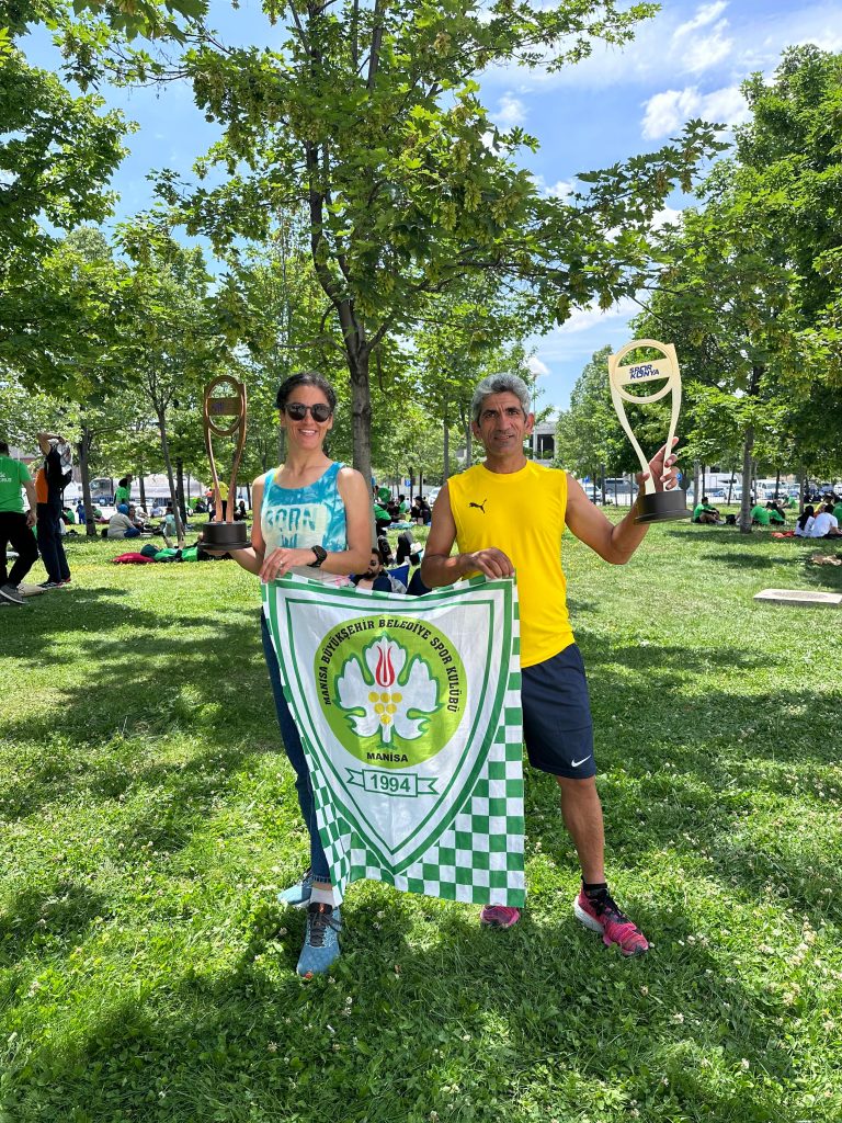 Konya Büyükşehir Belediyesi, Selçuklu Otizmli Bireyler Vakfı (SOBE), Meram Down Sendromlu Bireyler Yaşam Destek Merkezi (DOSD MERAM) ile Karatay Alzheimer Gündüz Yaşam Merkezi işbirliğinde 3. Uluslararası Konya Yarı Maratonu düzenlendi. Manisa Büyükşehir Belediyesporlu atletler Ahmet Bayram ve Özlem Işık, 31 ülkeden binlerce sporcunun katılımıyla gerçekleştirilen koşuda, başarılı sonuçlar elde etti. 21 kilometrelik yarı maratona katılan Ahmet Bayram, 1 saat 17 dakika 18 saniyelik sonucuyla 50-54 yaş grubunda zirvede yer aldı. Bayram’ın ardından Nihat Özkaymak ikinci, Murat Kaya da üçüncü sıranın sahibi oldu. 10 kilometre kadınlar koşunda Esmanur Yılmaz şampiyonluk ipini göğüslerken, Dilan Çukurcam ikinci, yarışı 43 dakika 43 saniyede tamamlayan Manisa Büyükşehir Belediyesporlu Özlem Işık da üçüncü sırada tamamladı. Ahmet Bayram ve Özlem Işık, kazandıkları kupalarla poz vererek, yarışı başarılı bir şekilde tamamlamanın mutluluğunu yaşadılar.