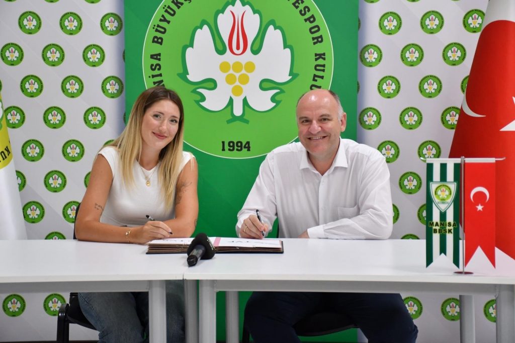 Manisa Büyükşehir Belediyespor Kulübü (BBSK) Kadın Voleybol Takımı, yeni sezon için transfer çalışmalarına hızla devam ediyor. Geçtiğimiz günlerde yapılan 3 transferin ardından Manisa BBSK Kadın Voleybol Takımı, düzenlenen törenle 4 yeni oyuncuyu daha Yeşil-Beyazlı renklerine bağladı. Halil Onultmak Spor Tesisleri’nde düzenlenen imza töreninde Ayvalık Belediyespor’dan Neslihan Çengeltepe, Kapaklı Spor Kulübü’nden İlayda Alkan ve Cansu Ayyıldız ile Betaspor Kulübü’nden Hilal Köse Manisa BBSK ile sözleşme imzaladı. Törende imza atan oyuncular hedeflerinin 1. Lig olduğunu söyledi.