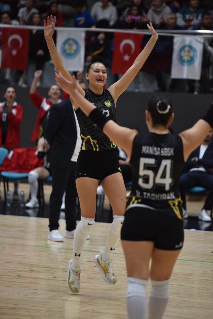 Manisa BBSK Voleybol Takımı evinde Söke Belediye Saldos Voleybol’u ağırladı. Manisa Büyükşehir Belediyesi Tarık Almış Kapalı Spor Tesisleri’nde oynanan karşılaşmanın ilk setinde üstün bir oyun sergileyen Manisa BBSK, seti 25-12’lik skorla kazanarak maça hızlı bir giriş yaptı. İkinci sette rakibinin etkili oyununa karşılık vererek, seti 25-17’lik skorla hanesine yazdıran yeşil-beyazlı ekip, üçüncü seti de 25-16’lık skorla tamamladı ve maçı 3-0’lık galibiyetle noktaladı. Manisa BBSK, bu sonuçla ligin ilk yarısını namağlup unvanını sürdürerek lider olarak kapatırken maçın oyuncusu Yaren Yüksel seçildi. Mücadeleyi, Manisa BBSK Kulüp Başkanı Emre Hasgör, Yönetim Kurulu Üyeleri, Murat Kümüştekin, Eray Durukan, Barış Ali Çınar, Erkan Turbil ve Nabi Başbay ve Kulüp Genel Müdürü Alparslan Kaya’da tribünde takip etti.