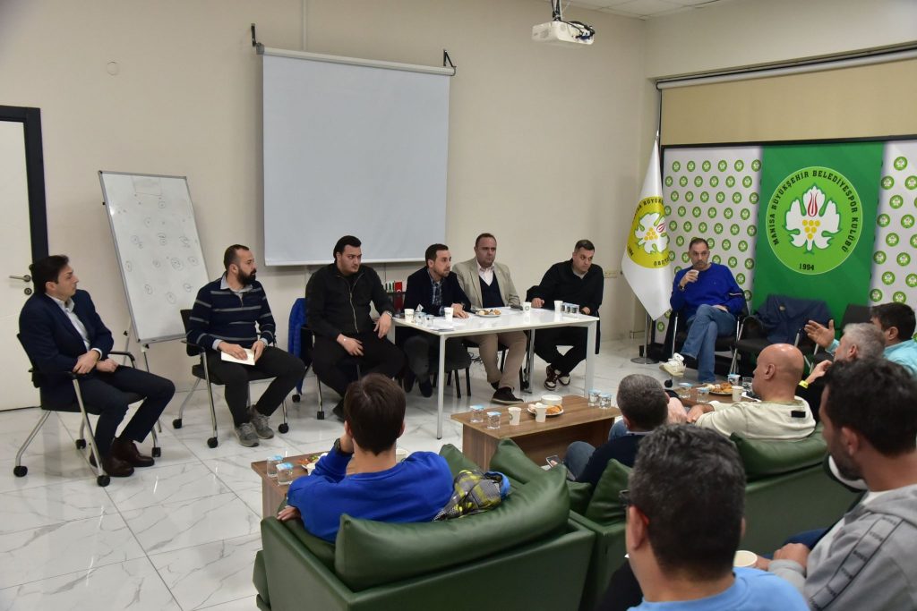 Toplantıya, Manisa Büyükşehir Belediyespor Kulübü Basketbol Şube Sorumlusu Yusuf Köseli, Yönetim Kurulu Üyeleri Alper Ayan, Can Sezici ve Mesut Köse, Kulüp Genel Müdürü Alparslan Kaya ve Spor Okulları Koordinatörü Serhat Yapıcı katıldı.