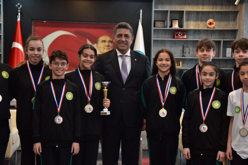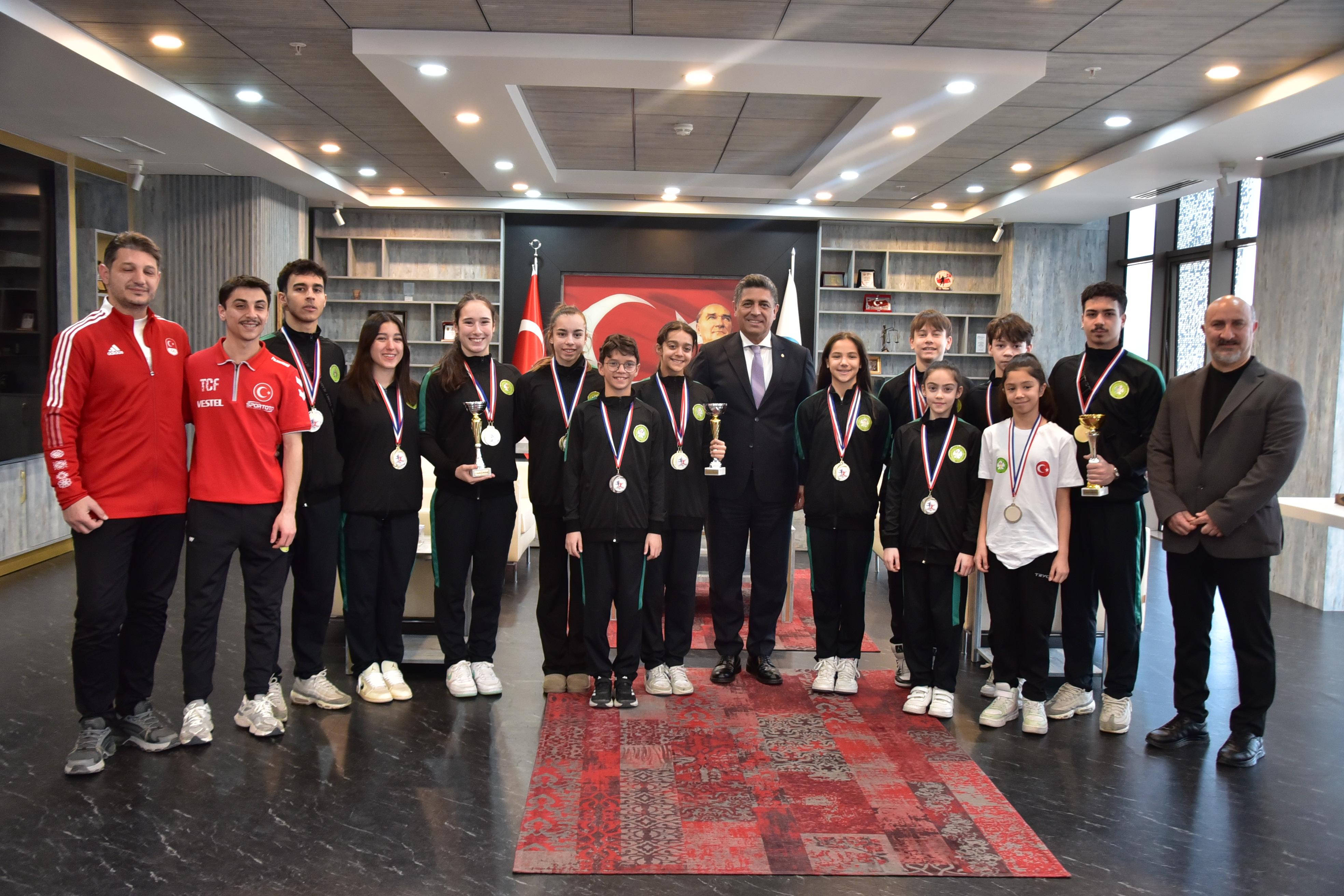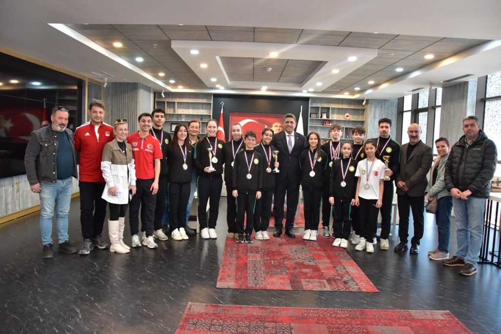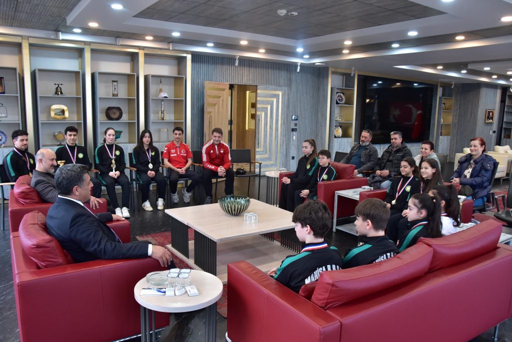 Manisa Büyükşehir Belediyesi Genel Sekreteri Burak Deste, Fransa’da düzenlenen Aquae Open Cup 2025 yılı Uluslararası Aerobik Cimnastik Turnuvası’nda 4 takım şampiyonluğu, 20 altın ve 6 gümüş madalya kazanan Büyükşehir Belediyespor Kulübü Cimnastik takımını ağırladı.