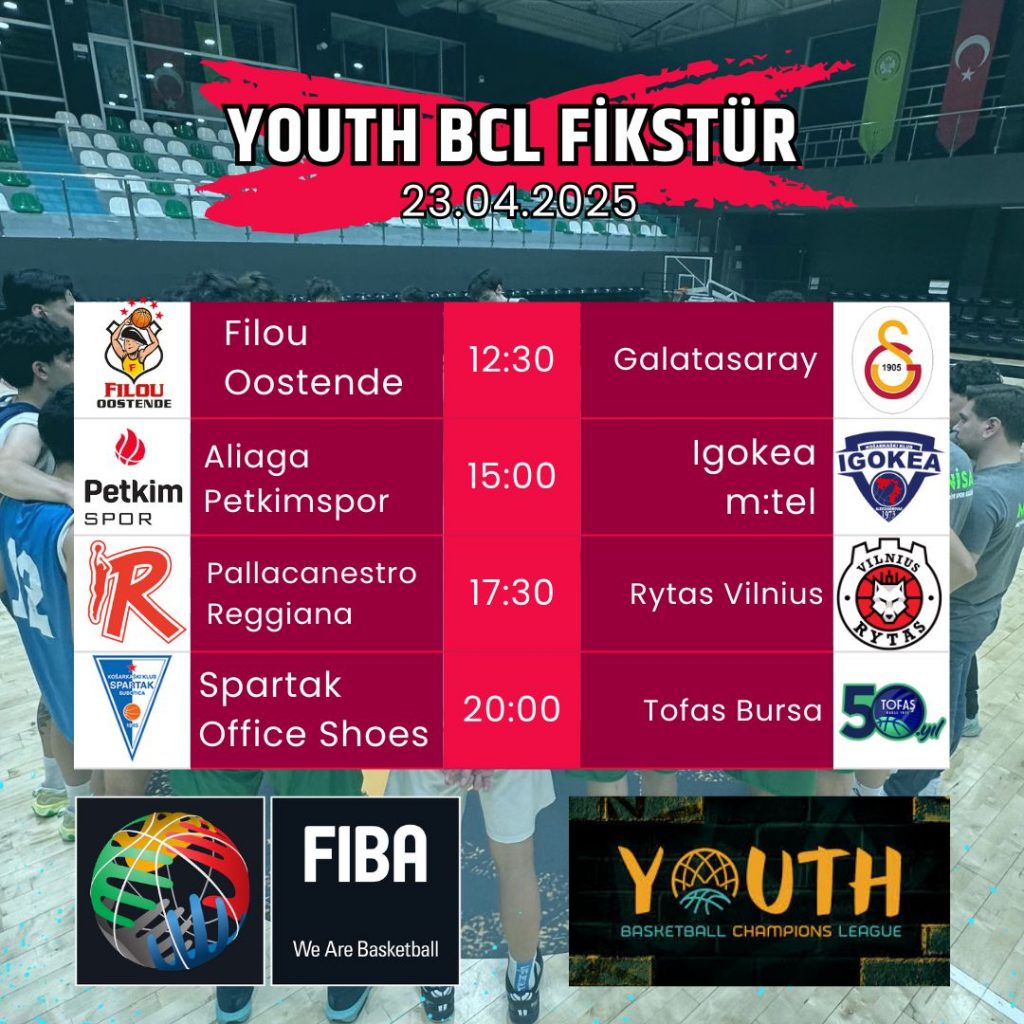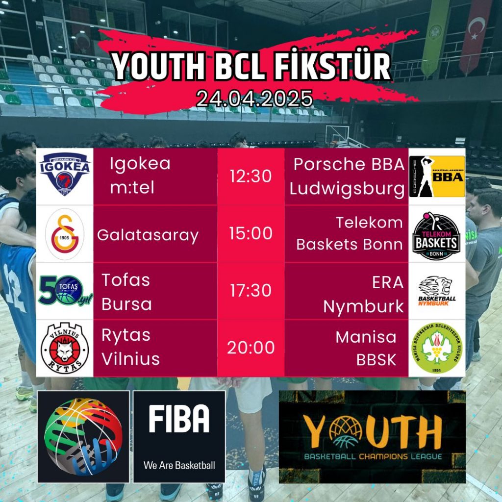Bu yıl 3’üncüsü düzenlenecek olan FIBA Basketbol Gençler Şampiyonlar Ligi’nde (YBCL) maç takvimi de açıklandı. Manisa’nın ev sahipliğini yapacağı turnuvada, Manisa Büyükşehir Belediyespor U18 basketbol takımı C grubundaki ilk maçında İtalyan temsilcisi Pallacanestro Reggiana ile saat 20.00’da Tarık Almış Spor Salonu’nda karşılaşacak. Temsilcimiz, ikinci maçını 24 Nisan Perşembe günü saat 20.00’da Litvanya’dan Rytas Vilnius’a karşı oynayacak. Şampiyonanın açılış maçında 22 Nisan Salı günü saat 12.30’da Aliağa Petkimspor ile Porsche BBA Ludwigsburg parkeye çıkacak. Gruplarda oluşan tabloya göre 25-26-27 Nisan tarihlerinde oynanacak olan klasman ve yarıfinal ile final programı belli olacak.