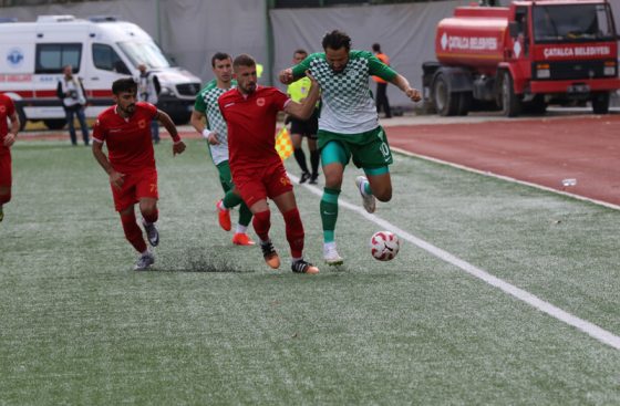 Karşılaşmanın 80. dakikasında ev sahibi Çatalca, maçta eşitliği sağladı. Oğuzhan’ın sol kanattan ortasında Recep ceza sahası içinde yarım vole vuruşuyla topu ağlara gönderdi ve durumu 1-1 yaptı.