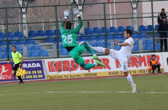 Maçın 13. dakikasında Barış’ın pasıyla ceza sahası içinde topla buluşan Burak Can düzeltip vurdu, Dersim defansı son anda araya girdi.