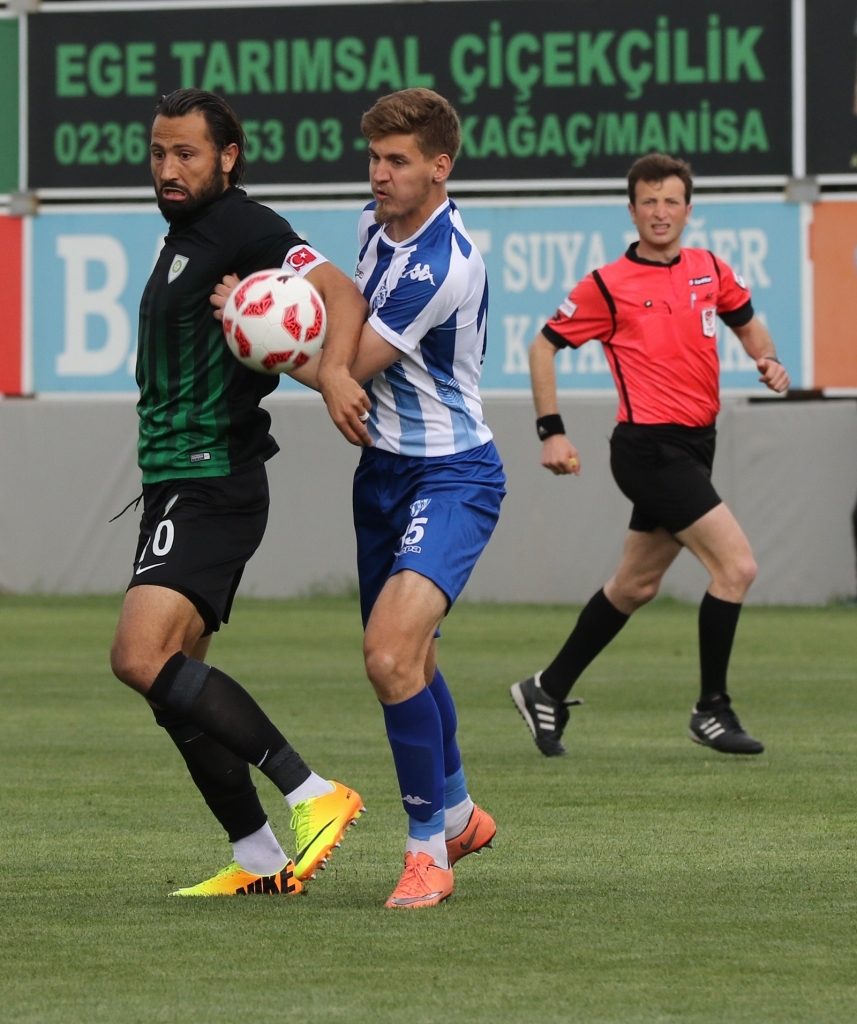 Spor Toto 3. Lig 2. Grupta 33. Hafta mücadelesinde Manisa Büyükşehir Belediyespor, Mümin Özkasap Stadı’nda Tokat temsilcisi Erbaaspor’u konuk etti. karşılaşmayı Manisa Büyükşehir Belediye Başkanı Cengiz Ergün, Tugay Komutanı Albay Şefik Güvenç, Manisa Büyükşehir Belediyespor Başkanı Mehmet Güzgülü, Büyükşehir Belediyespor Kulüp Başkan Yardımcısı Yılmaz Gençoğlu, Büyükşehir Belediyesi Genel Sekreter Yardımcısı Mustafa Genç ile birlikte yönetim kurulu üyeleri ve daire başkanları birlikte izledi. Karşılaşmaya futbolseverlerin ilgisi büyük olurken, az sayıda Erbaaspor taraftarı da karşılaşmayı izledi. Maçın büyük bölümünde rakibine oranla daha etkili bir grafik çizen Manisa Büyükşehir Belediyespor 35. Dakikada Alper ve 37. Dakikada Ali’nin golleriyle ilk yarıyı 2-0 önde kapattı. Konuk Erbaaspor maçın 59. Dakikasında Muhammed Ali’nin golüyle farkı bire indirse de, etkili oyununu ikinci yarıda da sürdüren Manisa Büyükşehir Belediyespor, 65. Dakikada Olcay’ın yaklaşık 40 metreden attığı muhteşem golle sahadan 3-1 galibiyetle ayrılarak puanını 55’e çıkardı ve ligin bitimine bir hafta kala play-off oynamayı garantiledi.