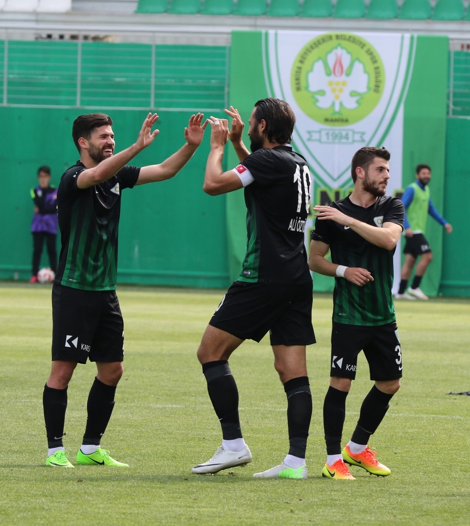 Golden sonrada ataklarını sürdüren Manisa Büyükşehir Belediyespor’da Ali’nin 70. Dakikada ceza sahası sağ çaprazından sert şutu yan ağlarda kaldı.