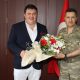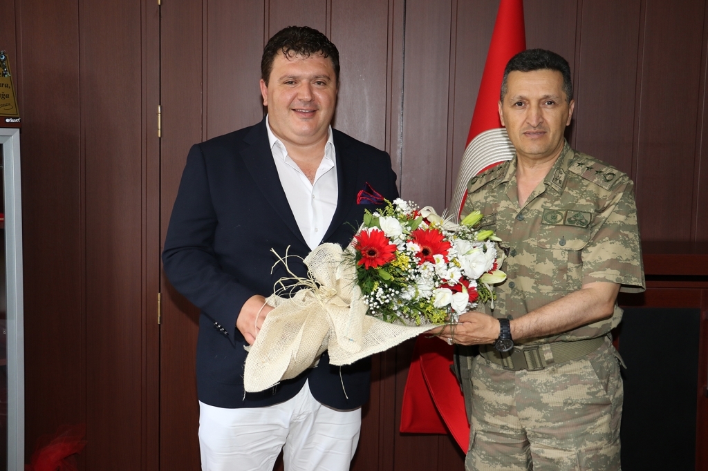 Kulüp Başkanımız Aktan ve Yönetim Kurulu Üyelerimiz, Rektör Çelebi’nin ardından Manisa 1.Piyade Eğitim Tugay Komutanı Albay Şefik Güvenç’i ziyaret ettiler. Aktan, Albay Şefik Güvenç’e de üzerinde isminin yazılı olduğu kulüp formasını hediye etti. Manisa Büyükşehir Belediyespor’un futbol ve voleybol maçlarını fırsat buldukça izlediğini dile getiren Tugay Komutanı Albay Güvenç, yeni sezonda Manisa Büyükşehir Belediyespor’a başarı dileklerinde bulundu.