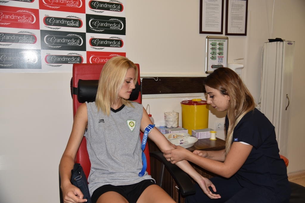 Yeni sezon hazırlıklarına başlayan Manisa Büyükşehir Belediyespor Bayan Voleybol Takımı oyuncuları sağlık kontrolünden geçti.